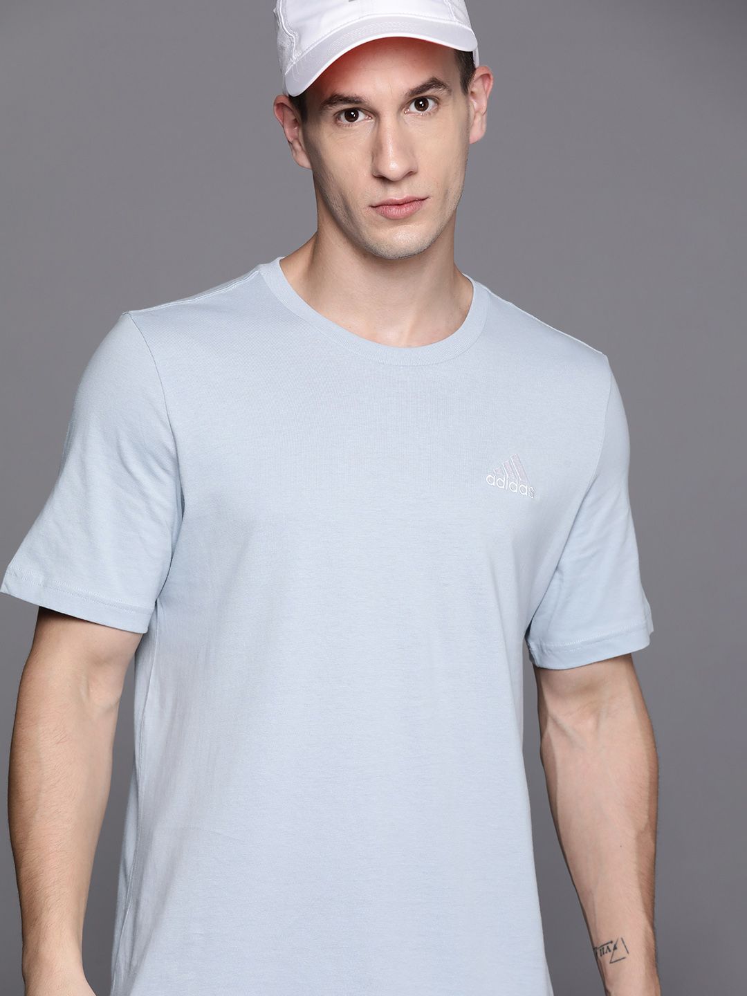 Men Grey Solid Round Neck Pure Cotton T-shirt