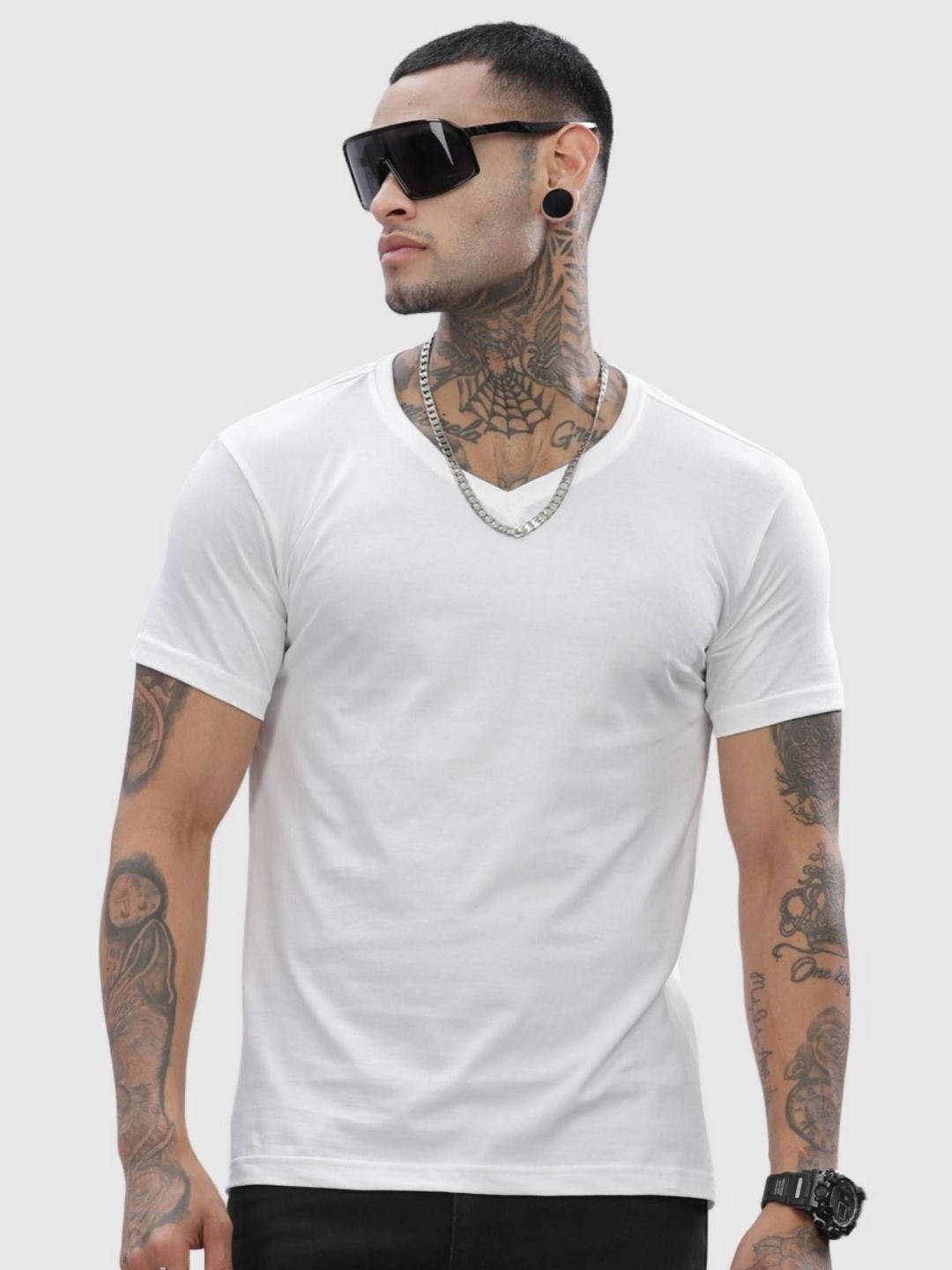 Men Solid Round Neck Cotton Slim Fit T-Shirt