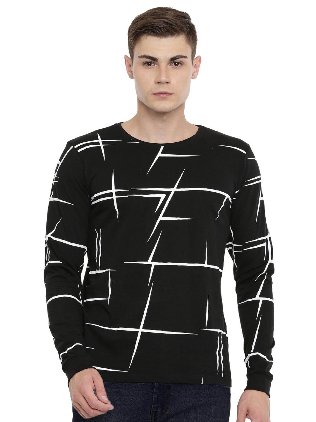 Men Black & White Slim Fit Printed Round Neck T-shirt