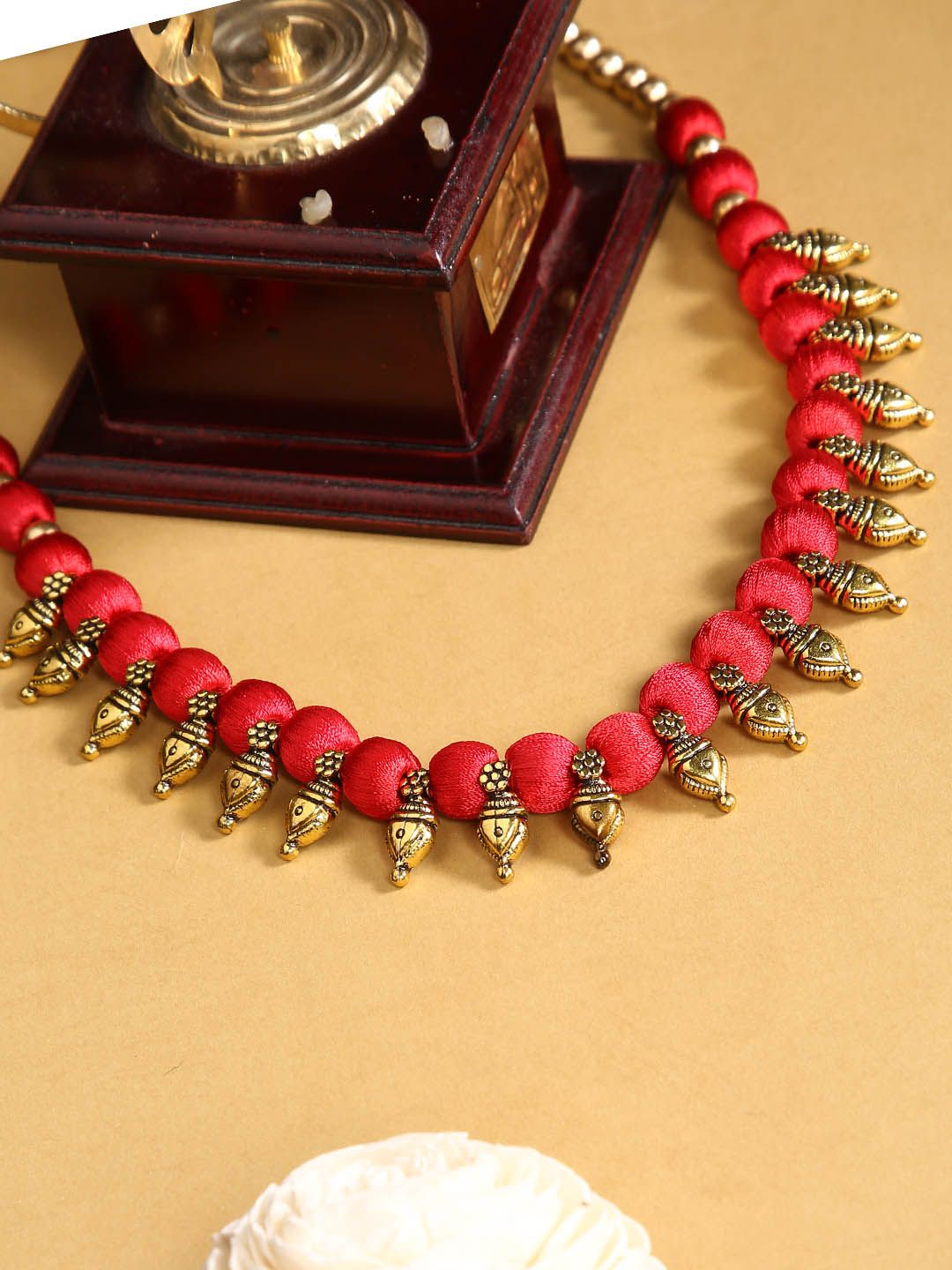 Women Gold-Toned Beaded Silk Thread Handcrafted Necklace