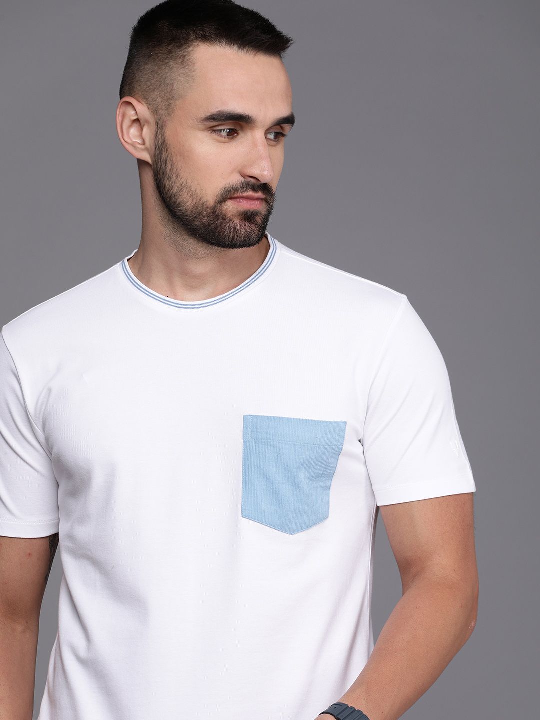 Men Pure Cotton Slim Fit T-shirt With Pocket Detail