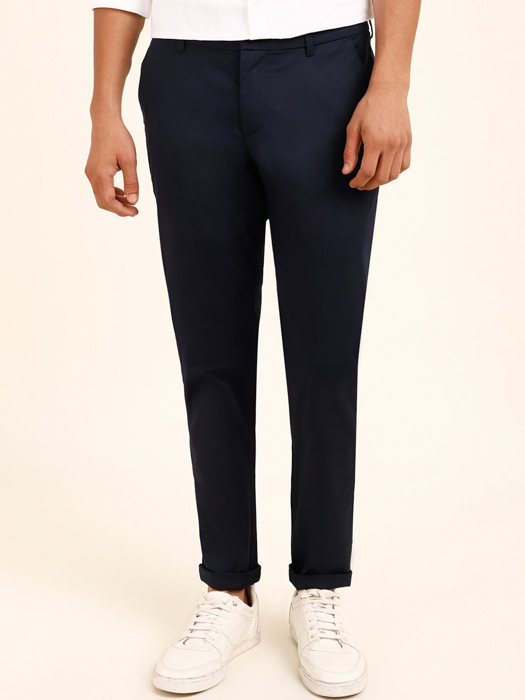 Men Ultra Slim Fit Mid-Rise Flat-Front Cotton Trousers