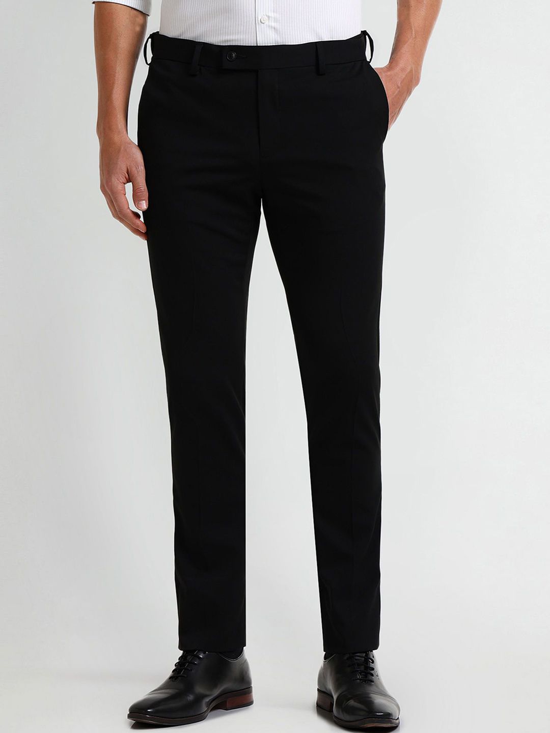 Men Plain Smart Flex Mid-Rise Slim Fit Formal Trousers