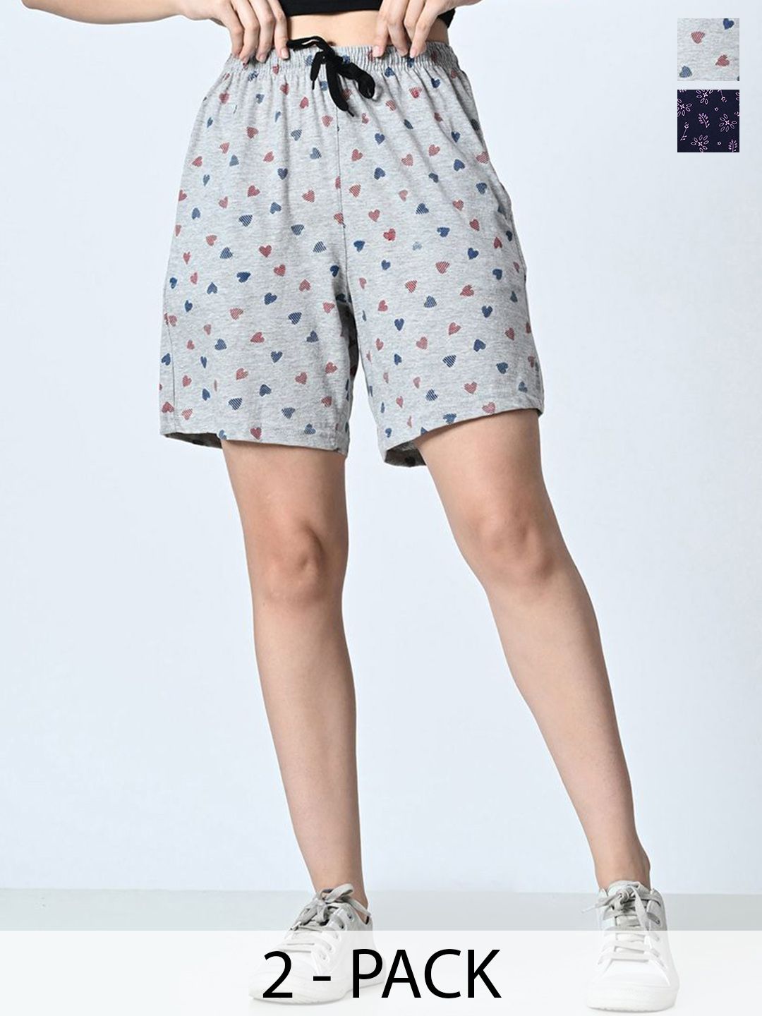 Women Pack of 2 Cotton Printed High-Rise Shorts