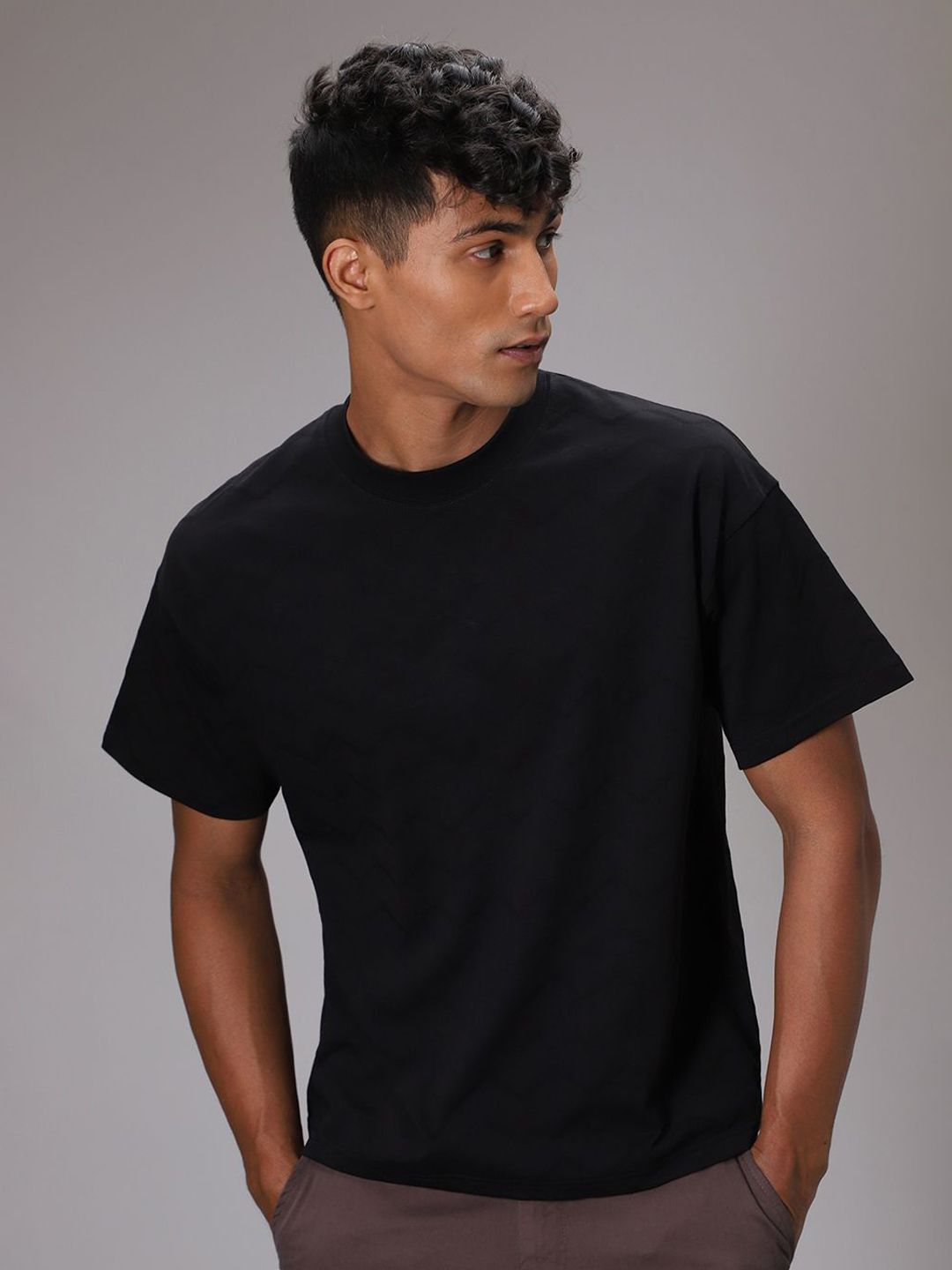 Men Black Ribbed Oversized Heavy Jersey T-Shirt