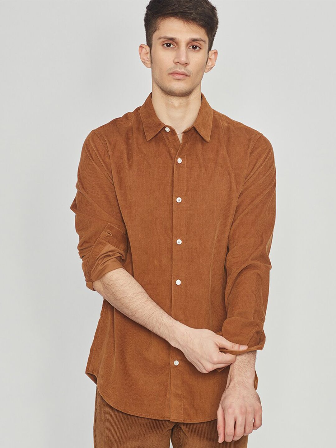 Men Brown Solid Standard Regular-Fit Semiformal Cotton Shirt