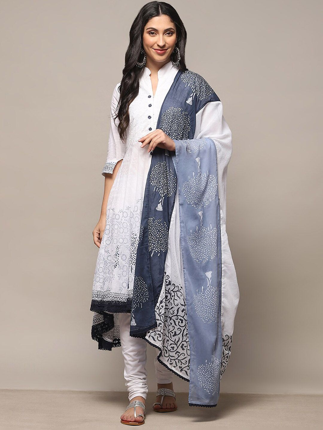 Women Blue Printed Empire Pure Cotton Anarkali with Trouser & Dupatta