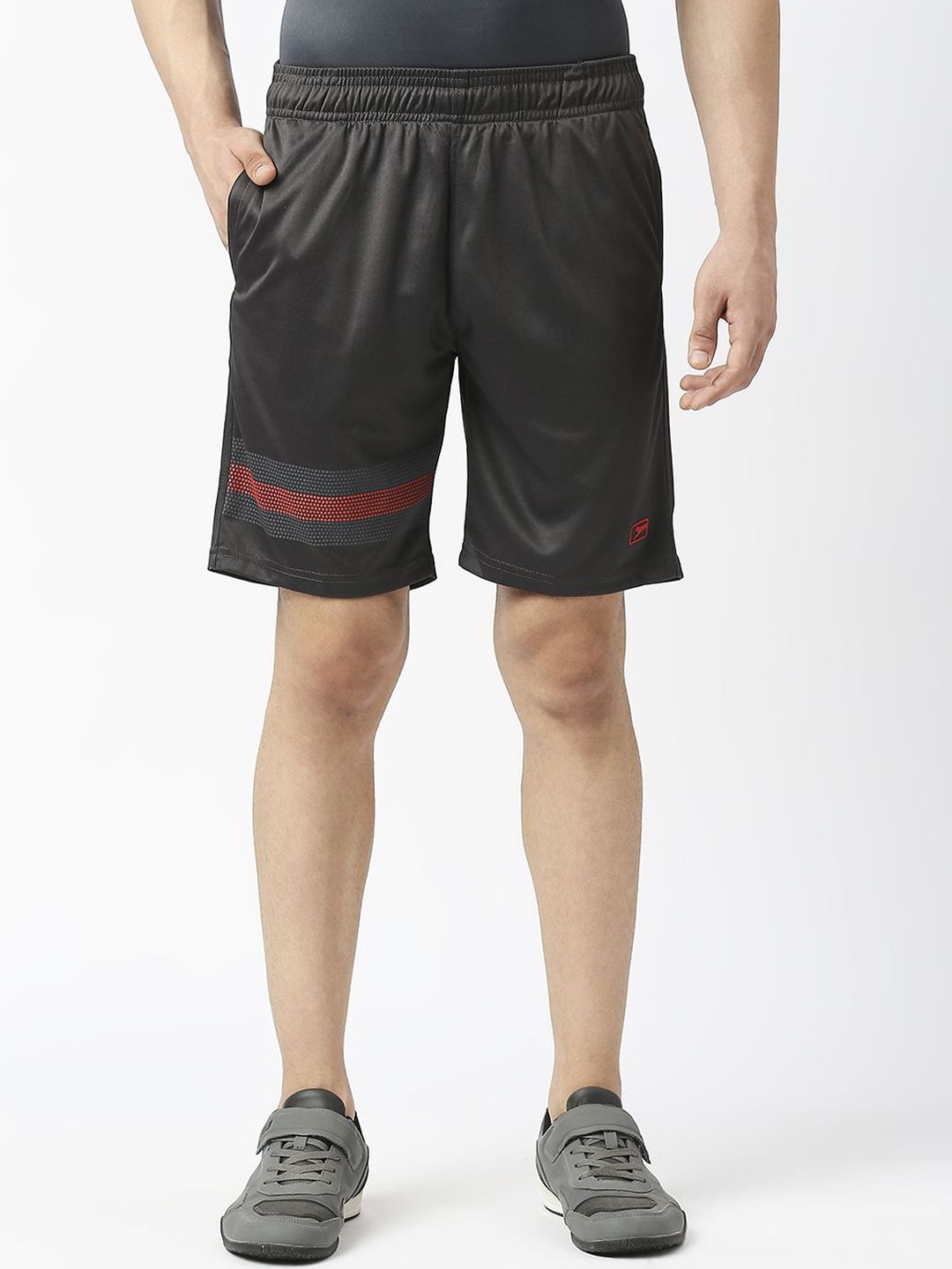 Men Charcoal Grey Solid Regular Fit Regular Shorts with Colorblocking Panel Detail
