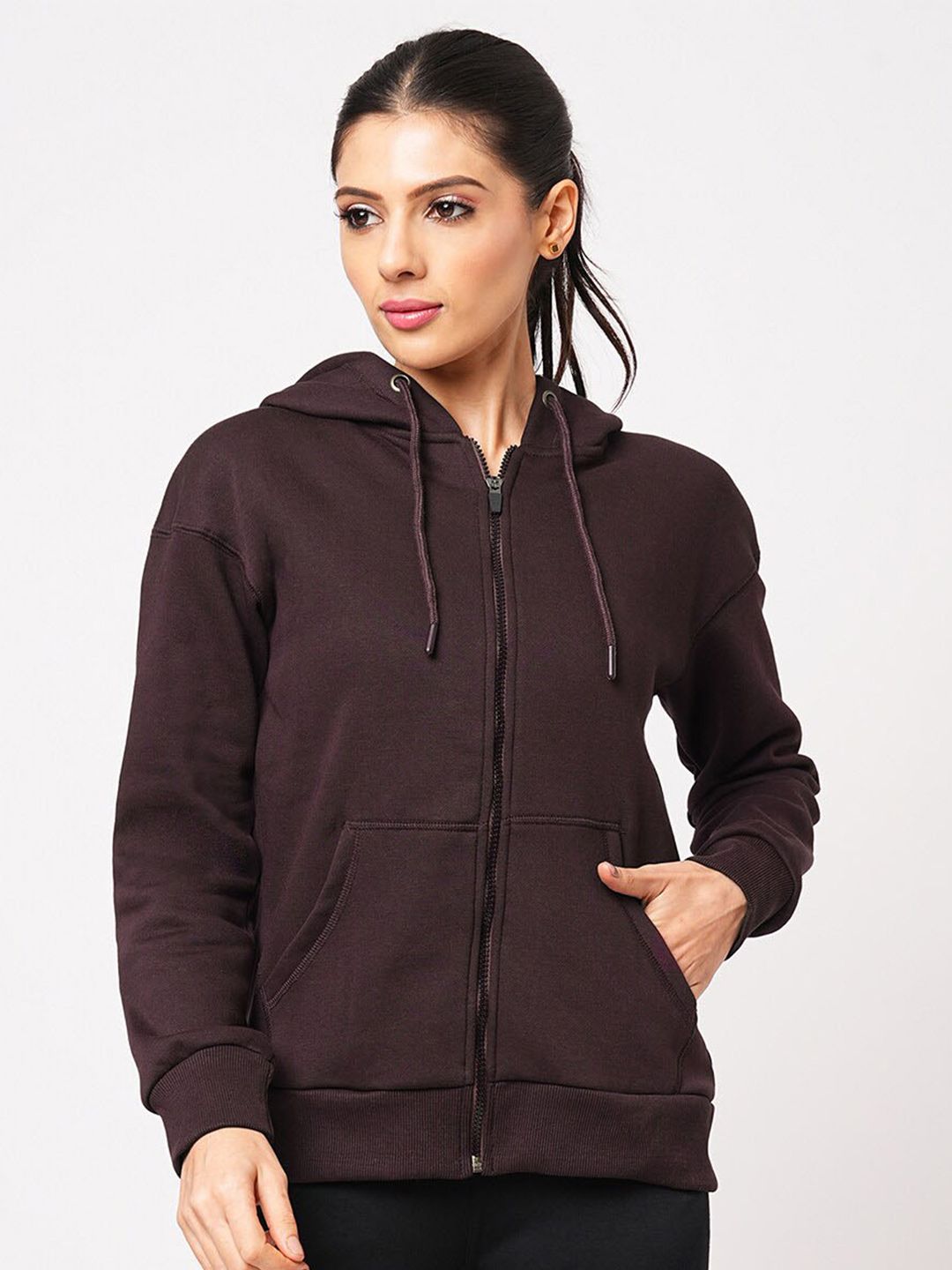 The Lifestyle Co Women Aubergine Solid Hooded Sweatshirt