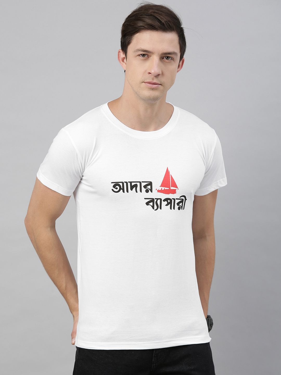 Men Grey ADAR BYAPARI Printed Round Neck T-shirt