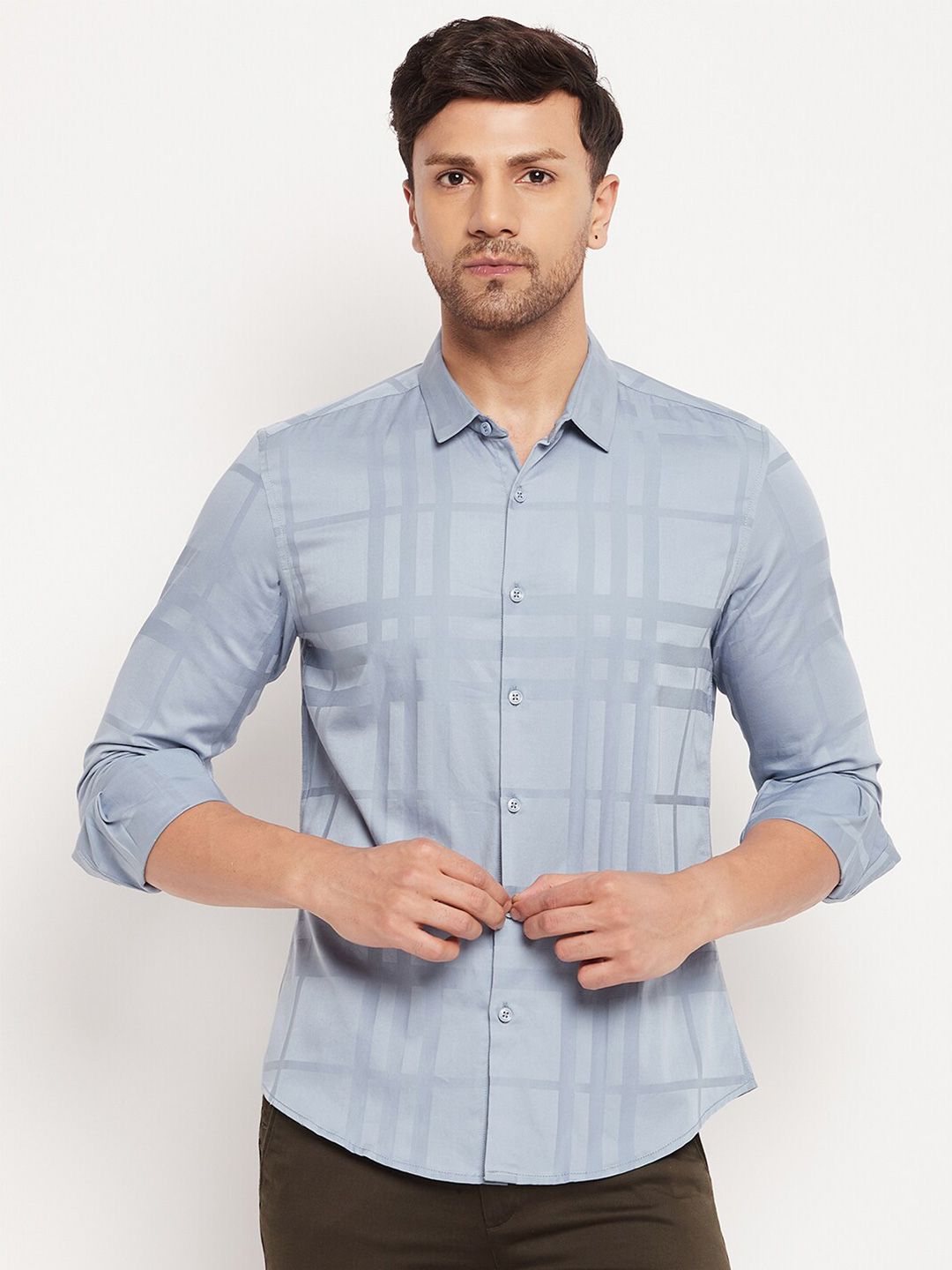 Men Slim Fit Windowpane Checked Casual Cotton Shirt