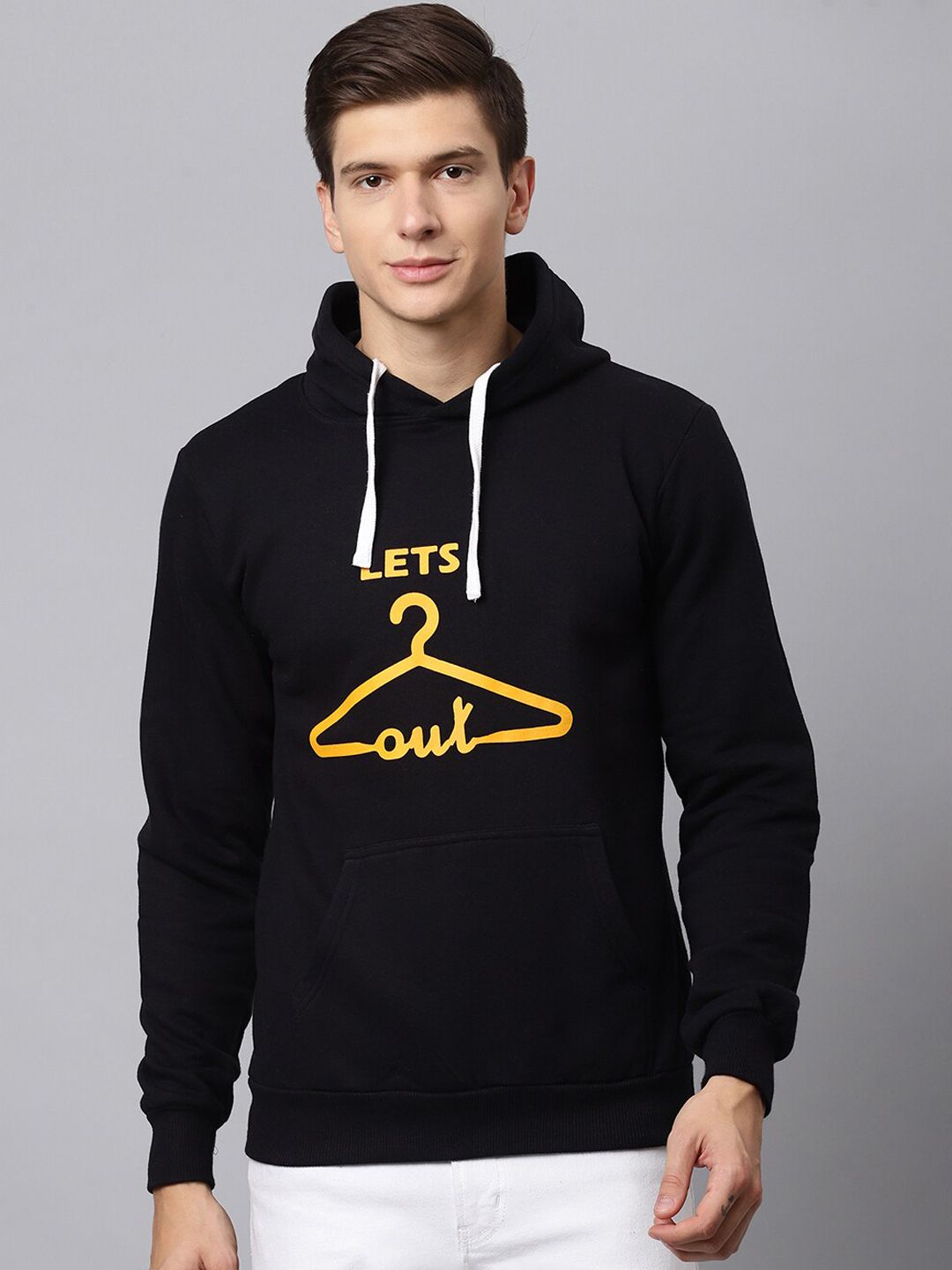 Men Mustard Yellow & Black Pure Cotton Printed Hooded Sweatshirt