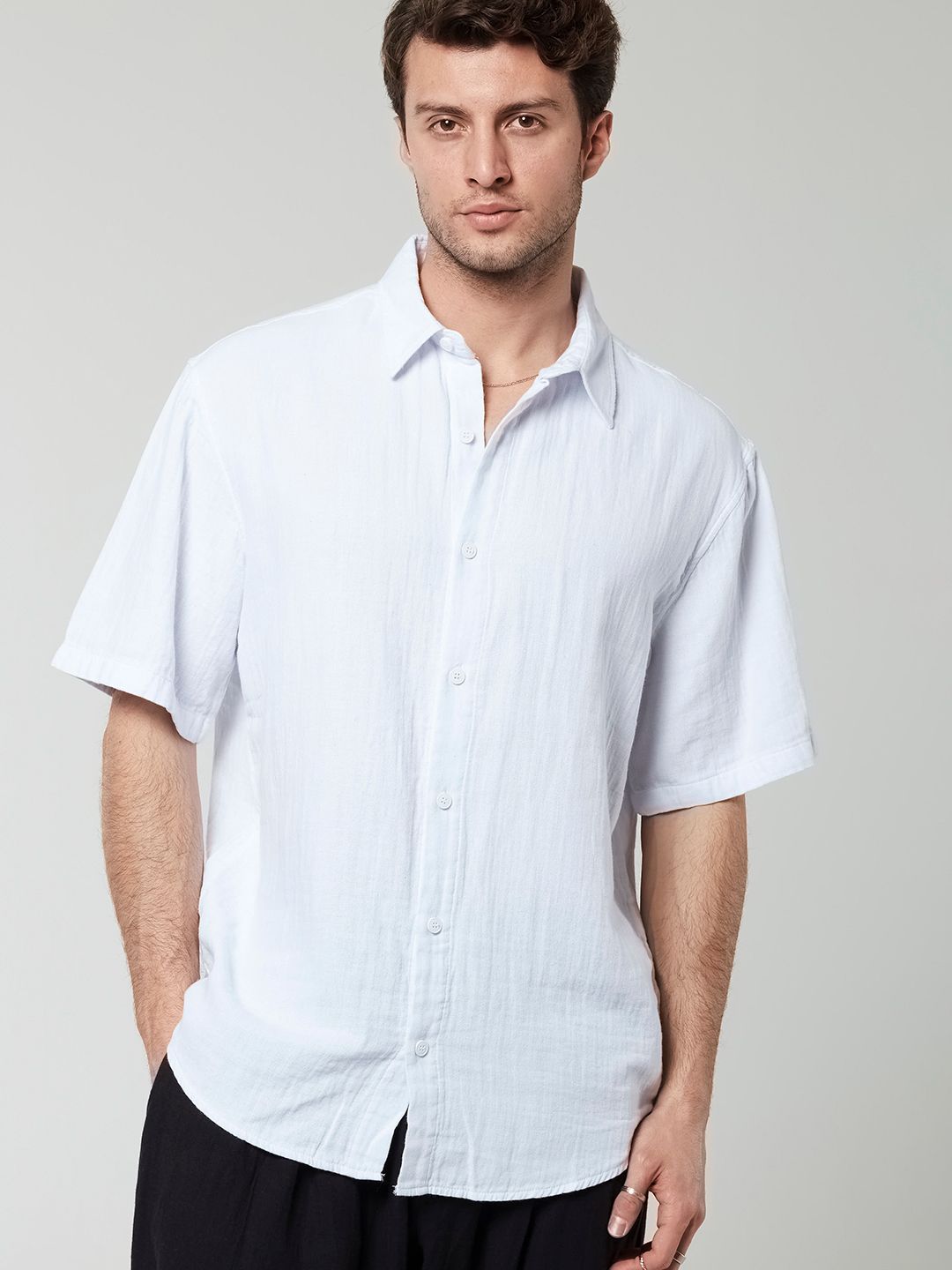 Cuban Collar Boxy Comfort Fit Cotton Casual Shirt