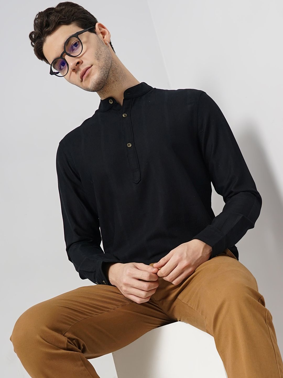 Mandarin Collar Long Sleeves Comfort Slim Fit Straight Short Kurta