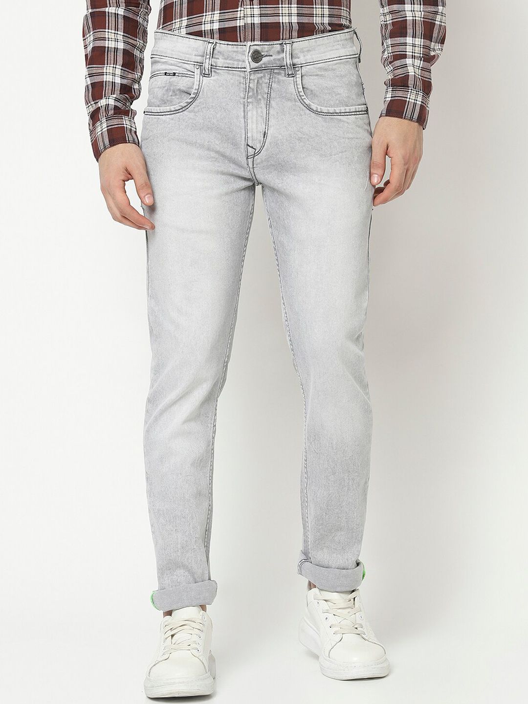 Men Grey Tapered Fit Mid-Rise Clean Look Jeans