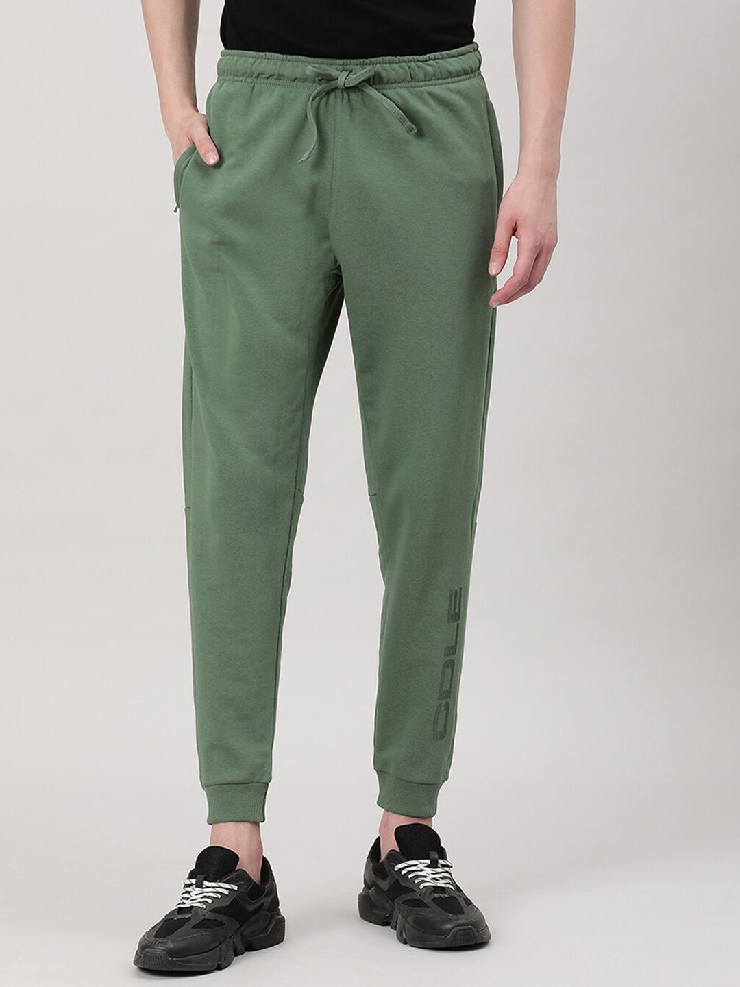 Men Olive Green Solid Pure Cotton Slim-Fit Track Pants