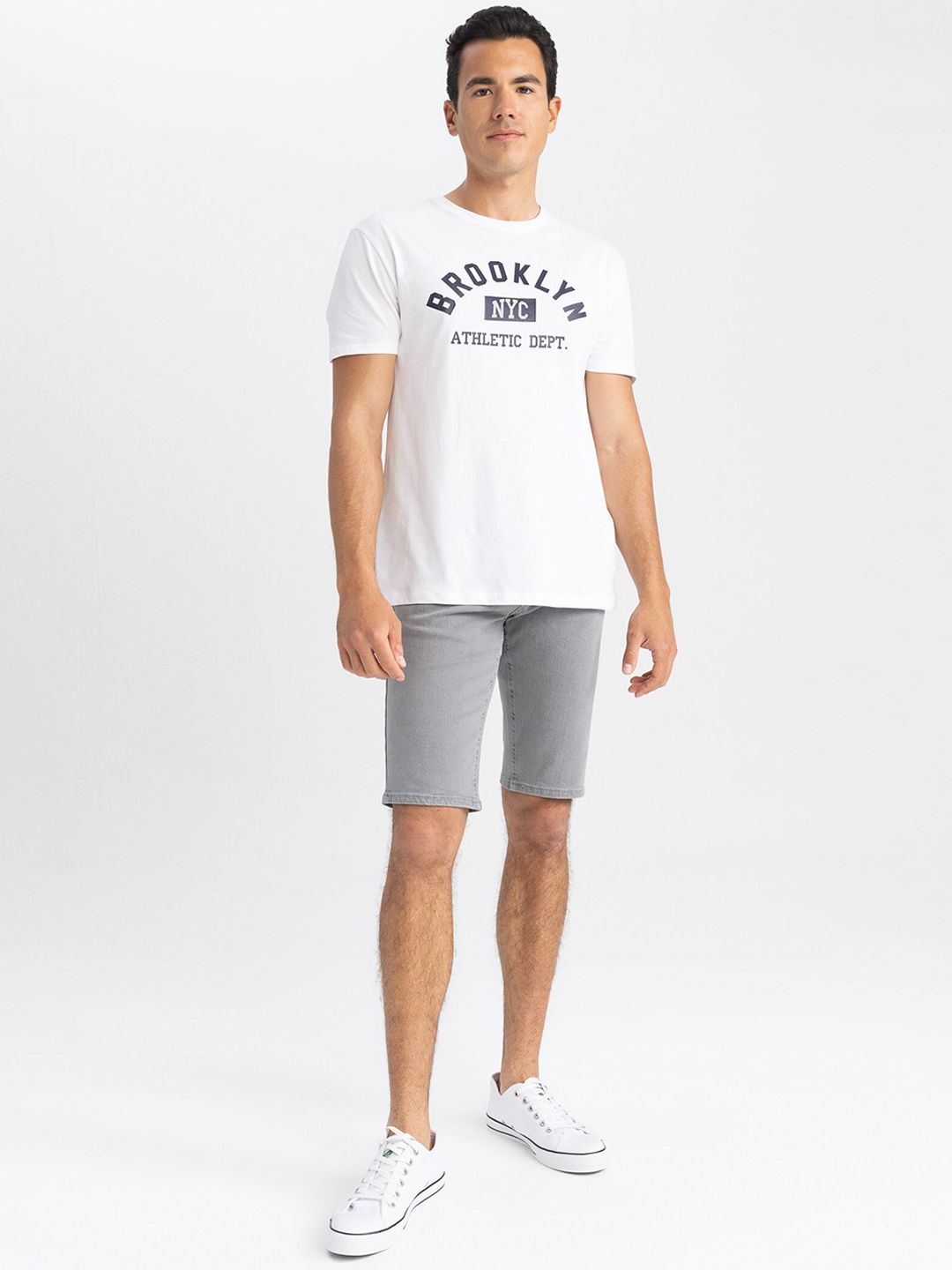 Men Brand Logo Printed Round Neck Slim Fit T-shirt