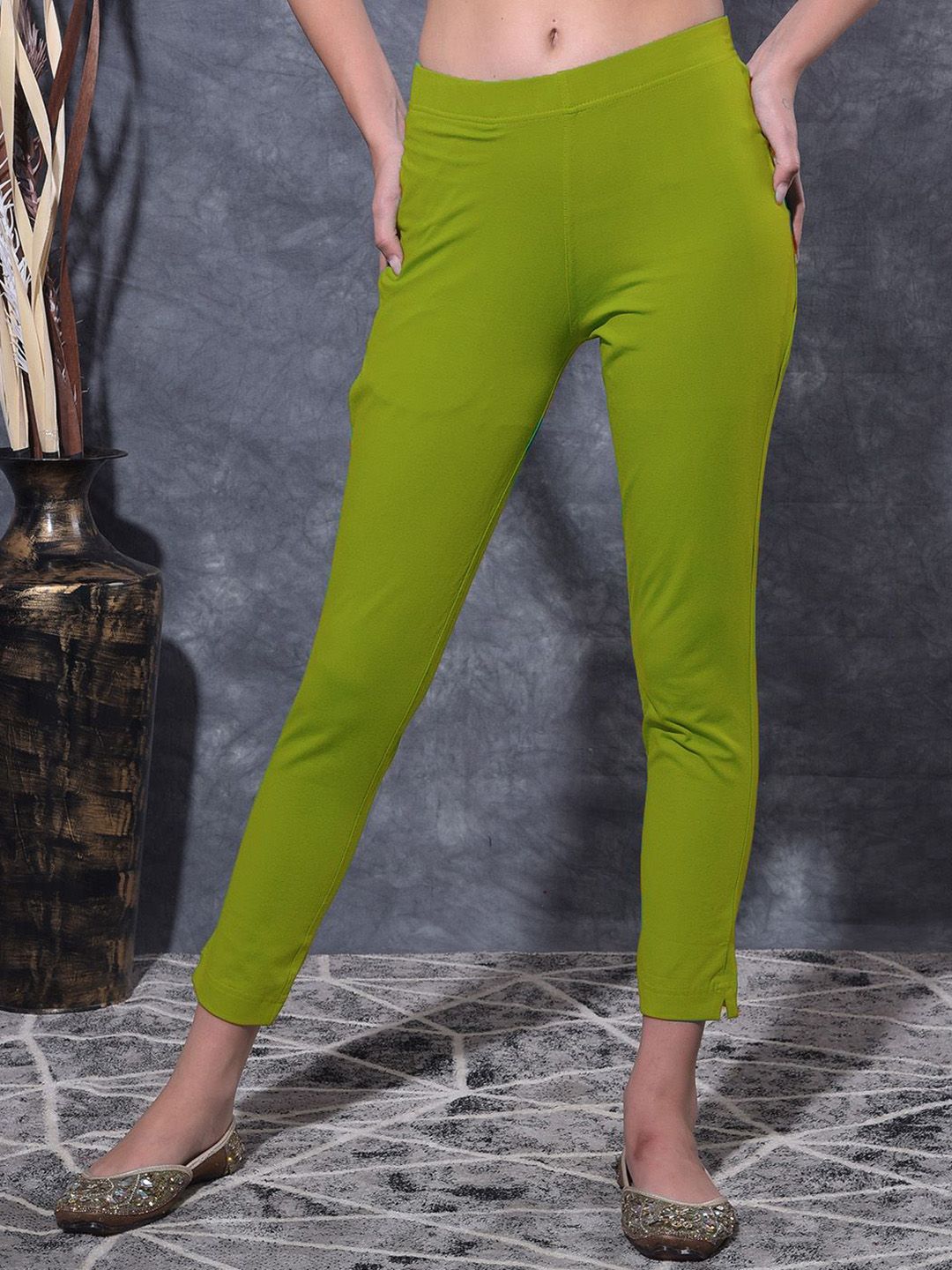 Women Green Solid Churidar Length Leggings