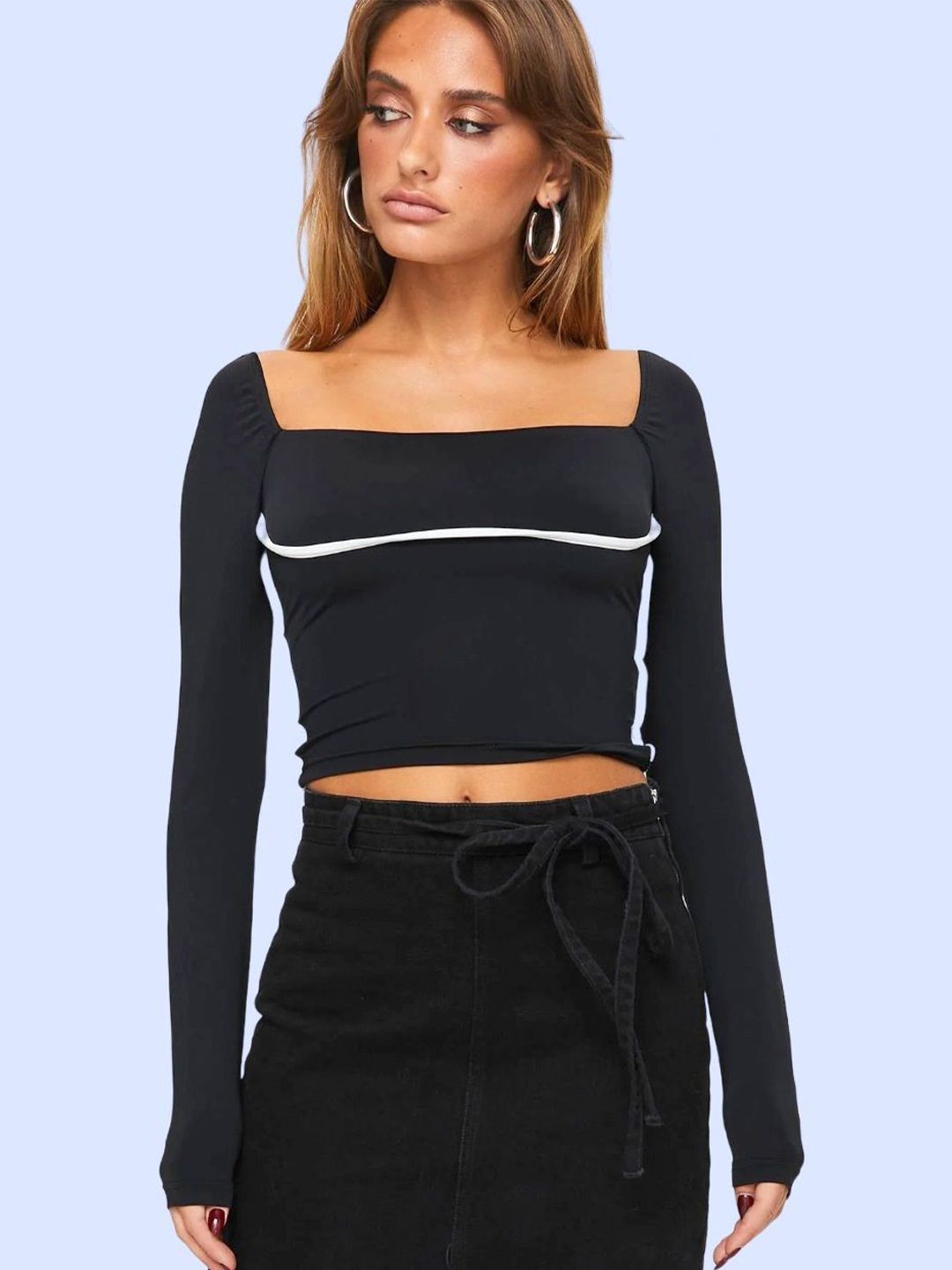 Square Neck Long Sleeves Fitted Crop Top