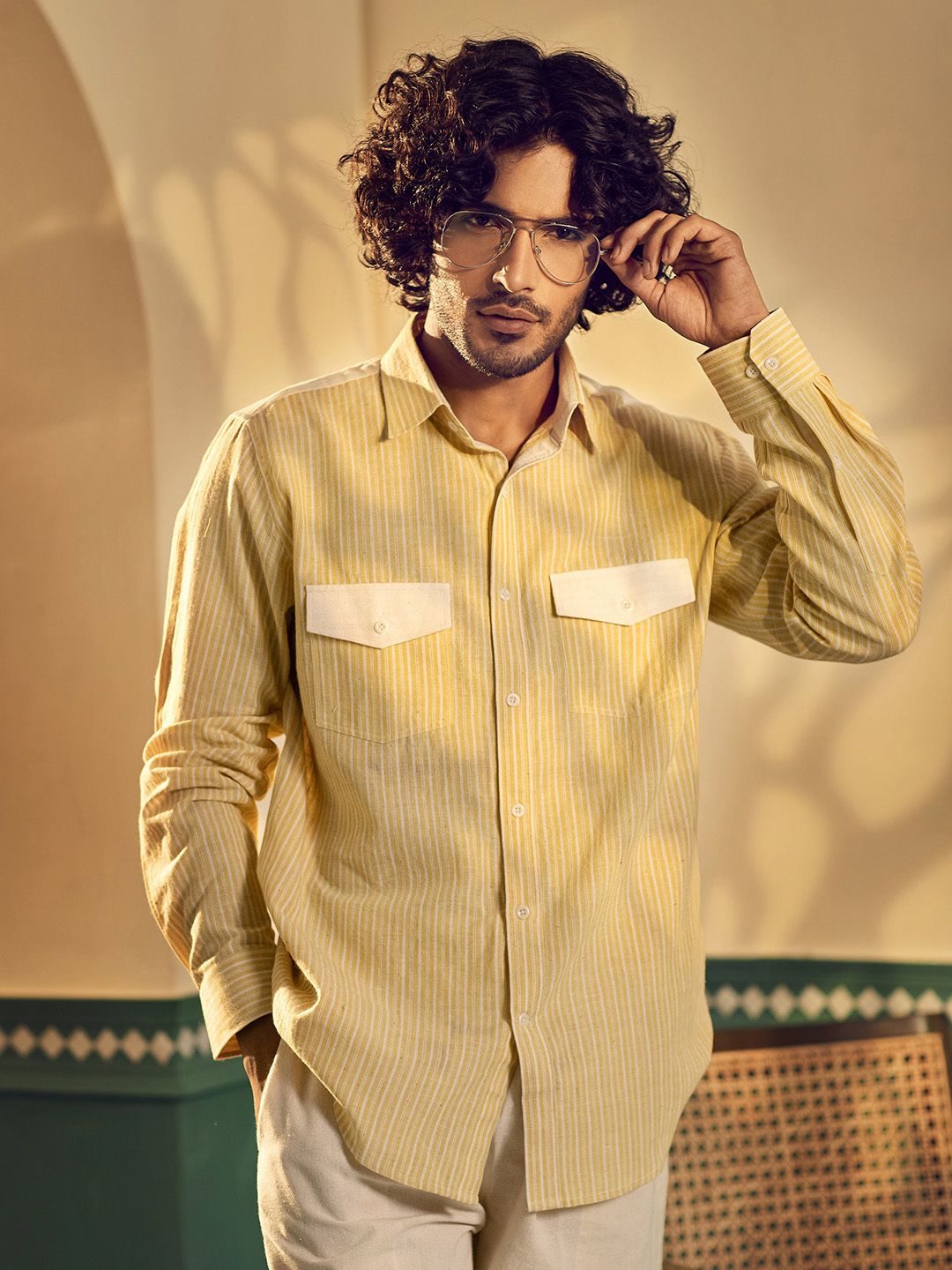 Spread Collar Long Sleeves Cotton Regular Fit Striped Premium Casual Shirt