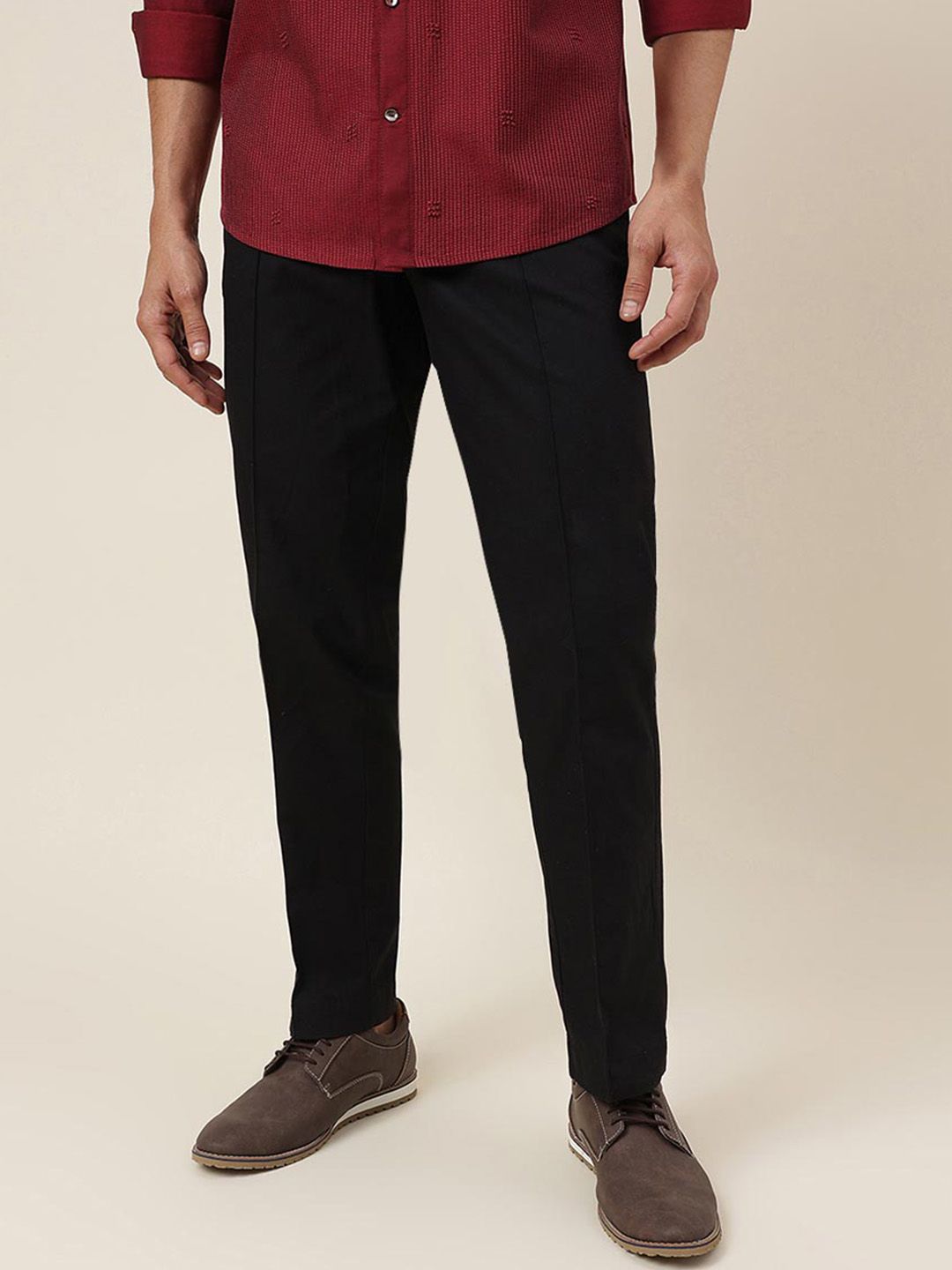 Men Slim Fit Mid-Rise Cotton Plain Regular Trousers Trousers