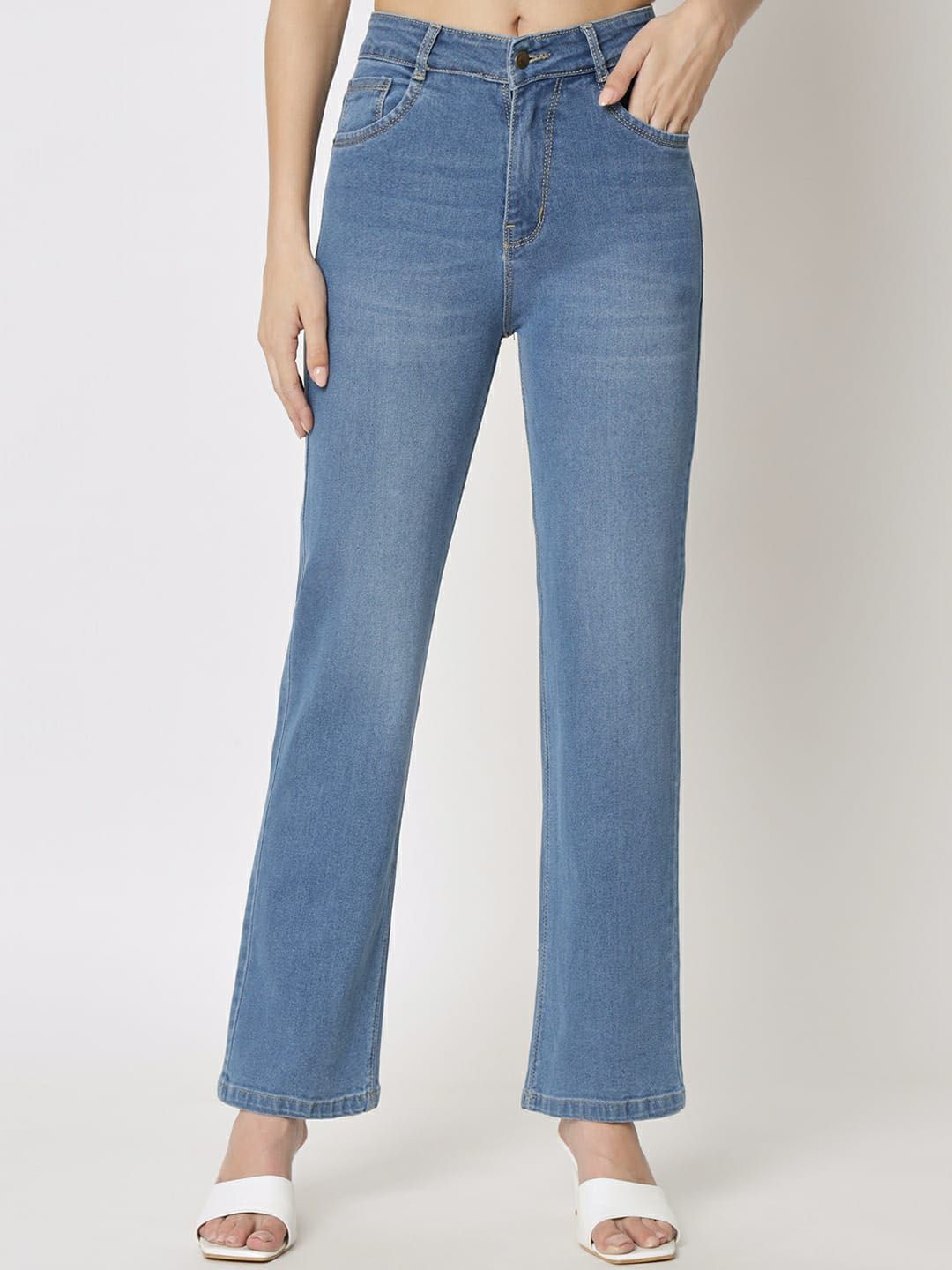 Women Straight Fit High Rise Light Fade Clean Look Jeans