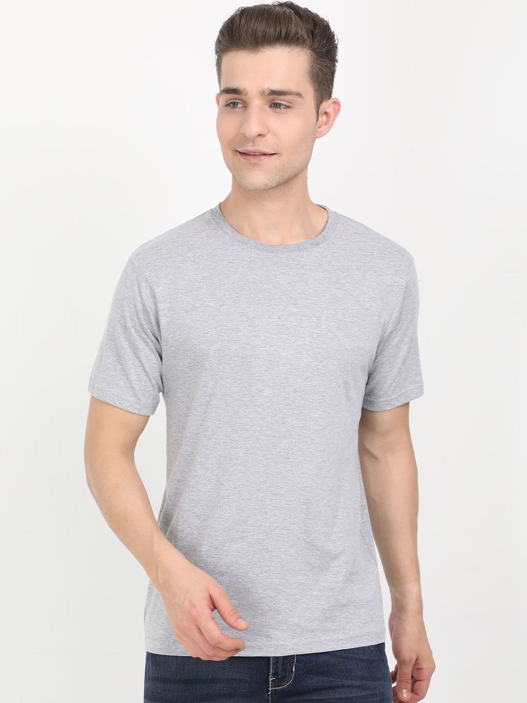 Men Grey Solid Round Neck Regular Fit T-shirt