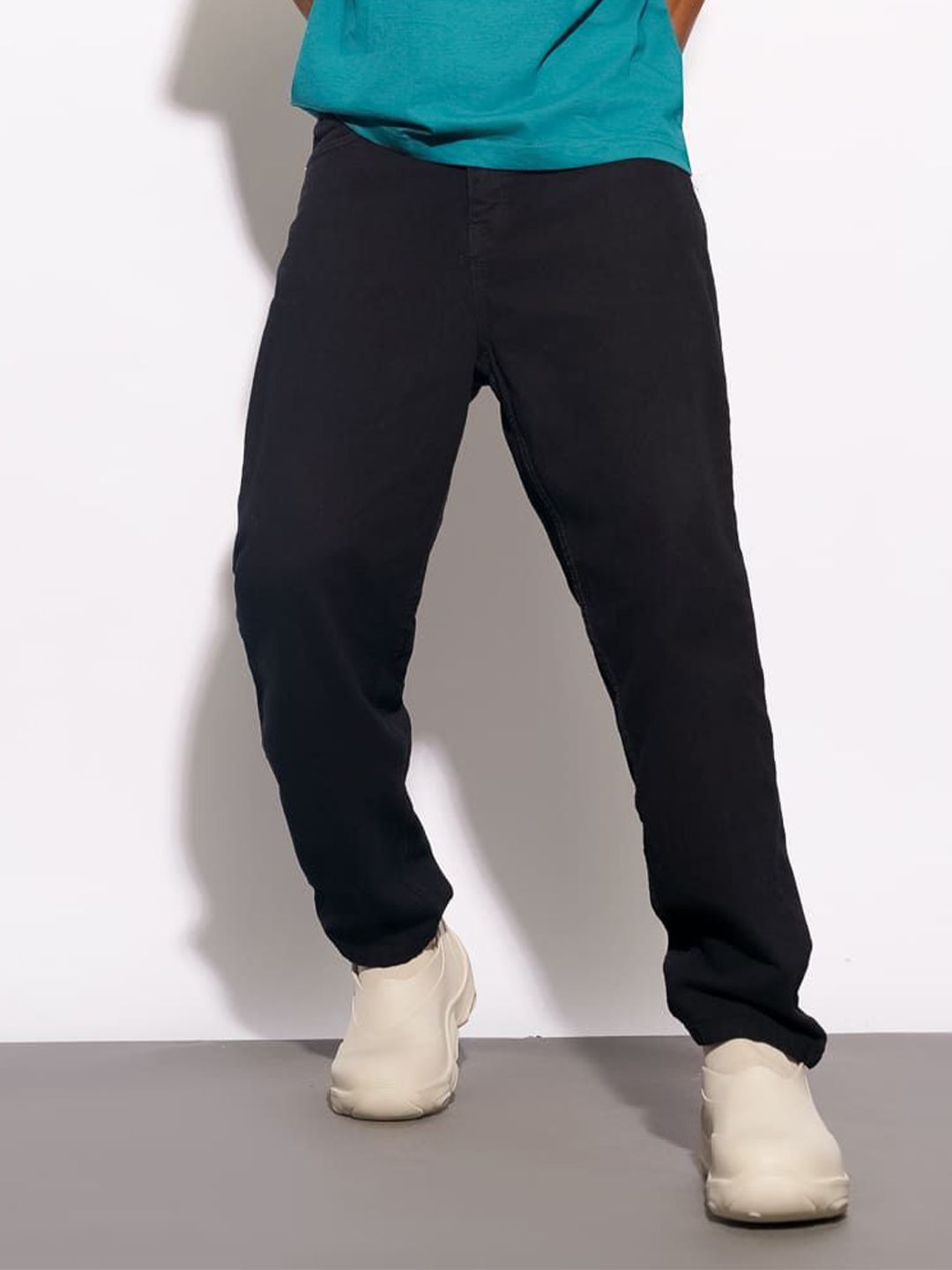 Women Black Relaxed Straight Leg Loose Fit High-Rise Easy Wash Parallel Trousers
