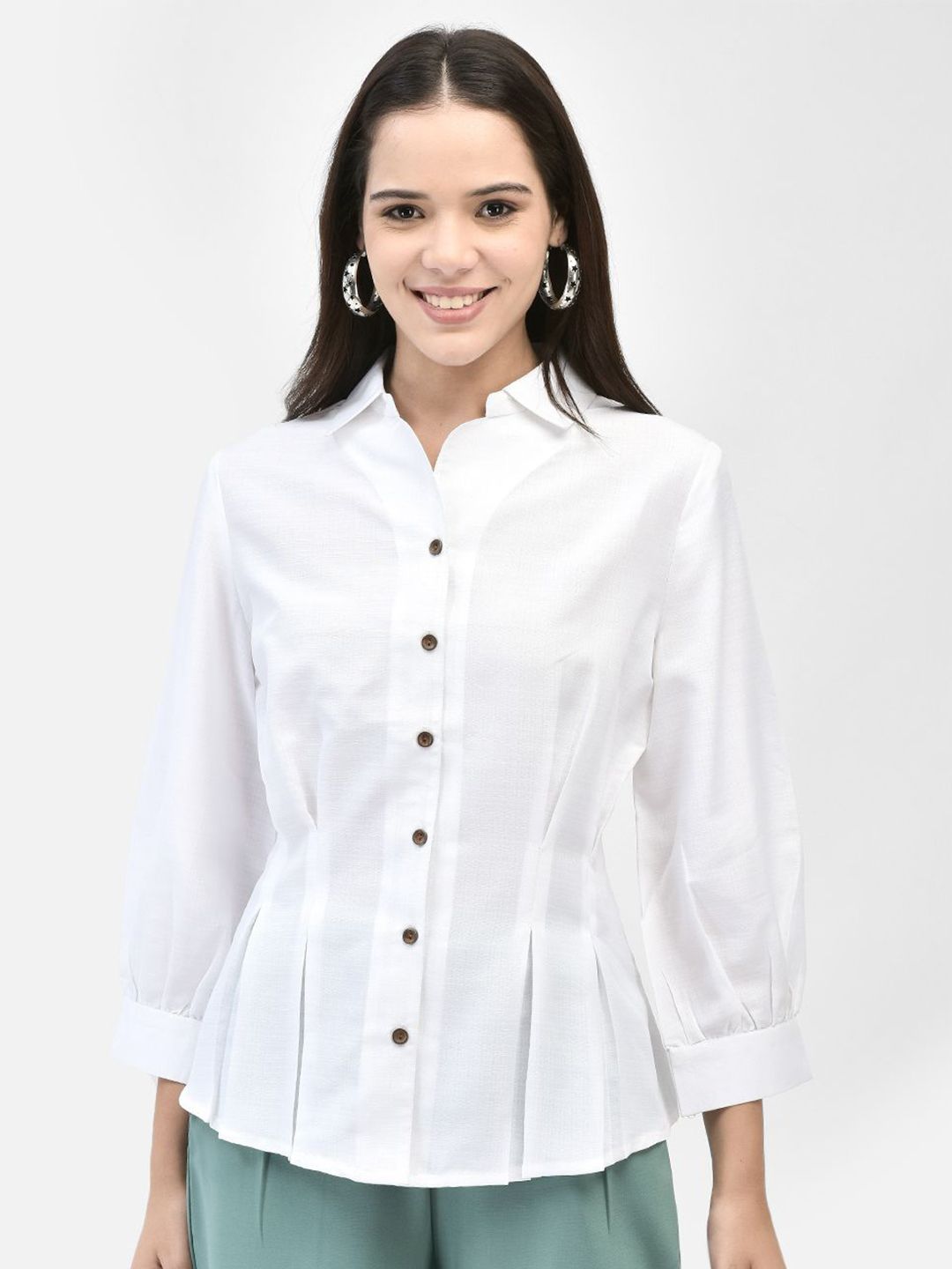 Women White Solid Pure Cotton Slim Fit Formal Shirt