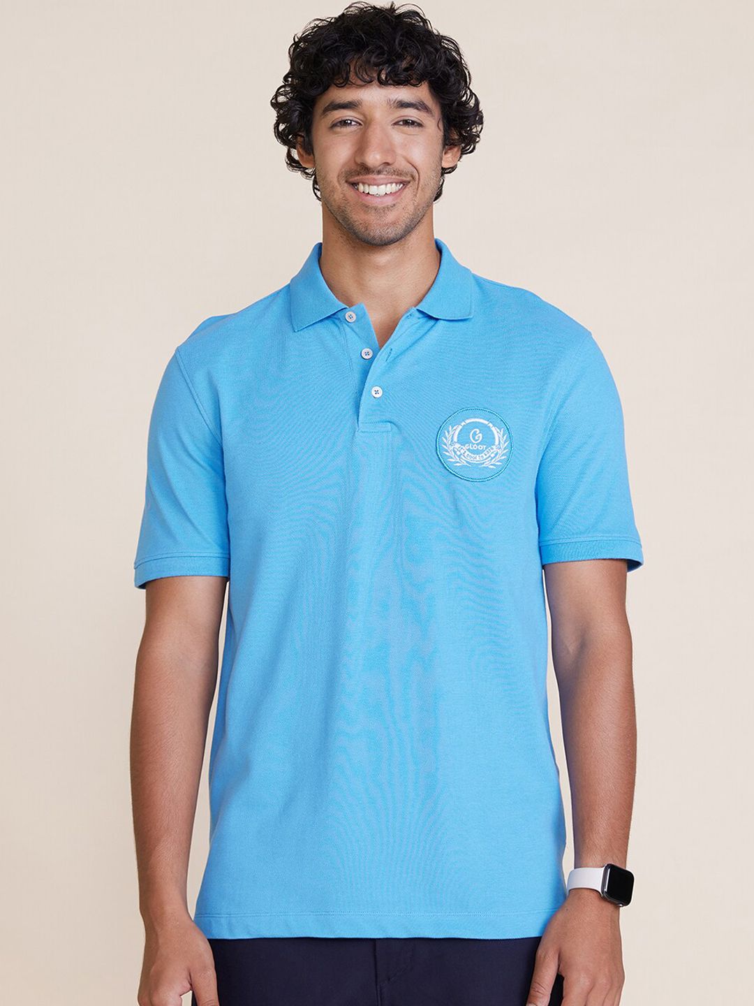 Men Paret-Pastel Regular Fit Polo Collar Applique T-Shirt