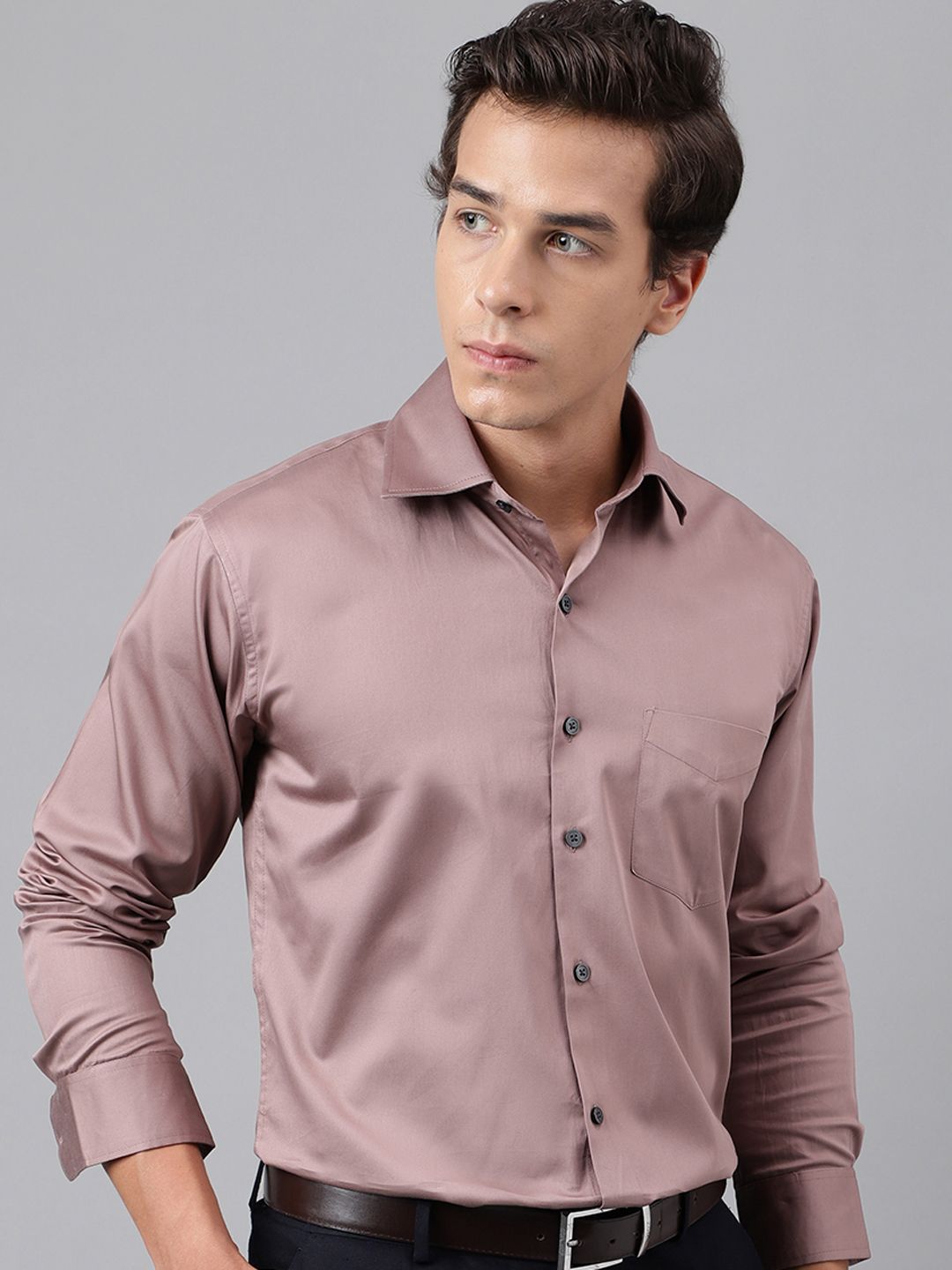 Men Dusty Pink Solid Slim Fit Cotton Formal Shirt