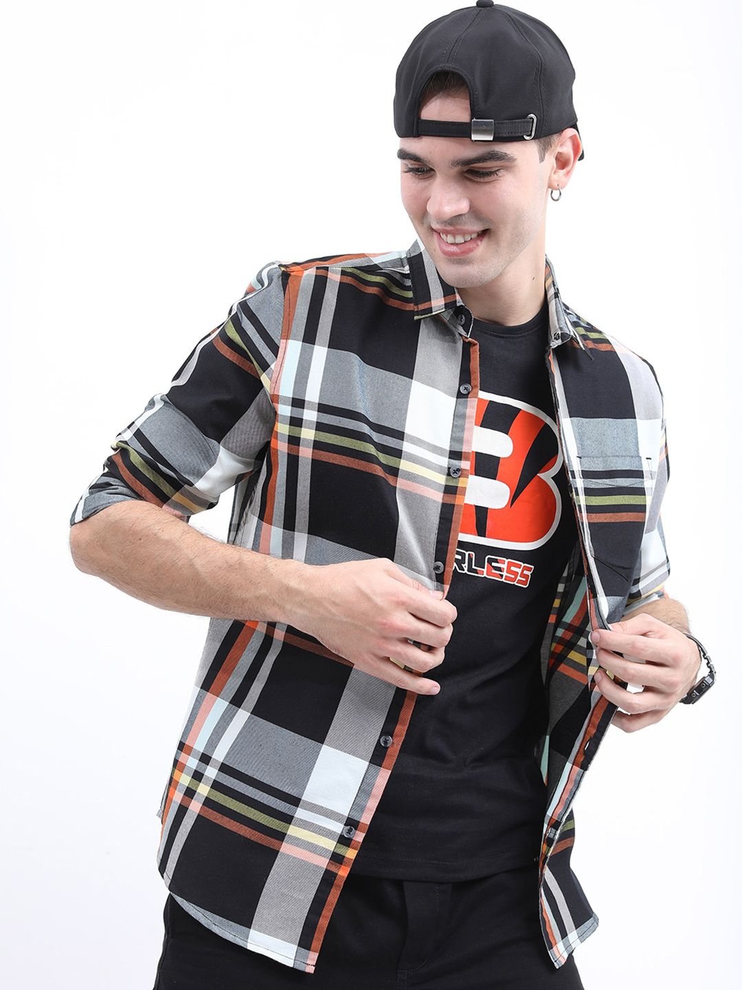 Men Black Comfort Tartan Checks Checked Casual Shirt