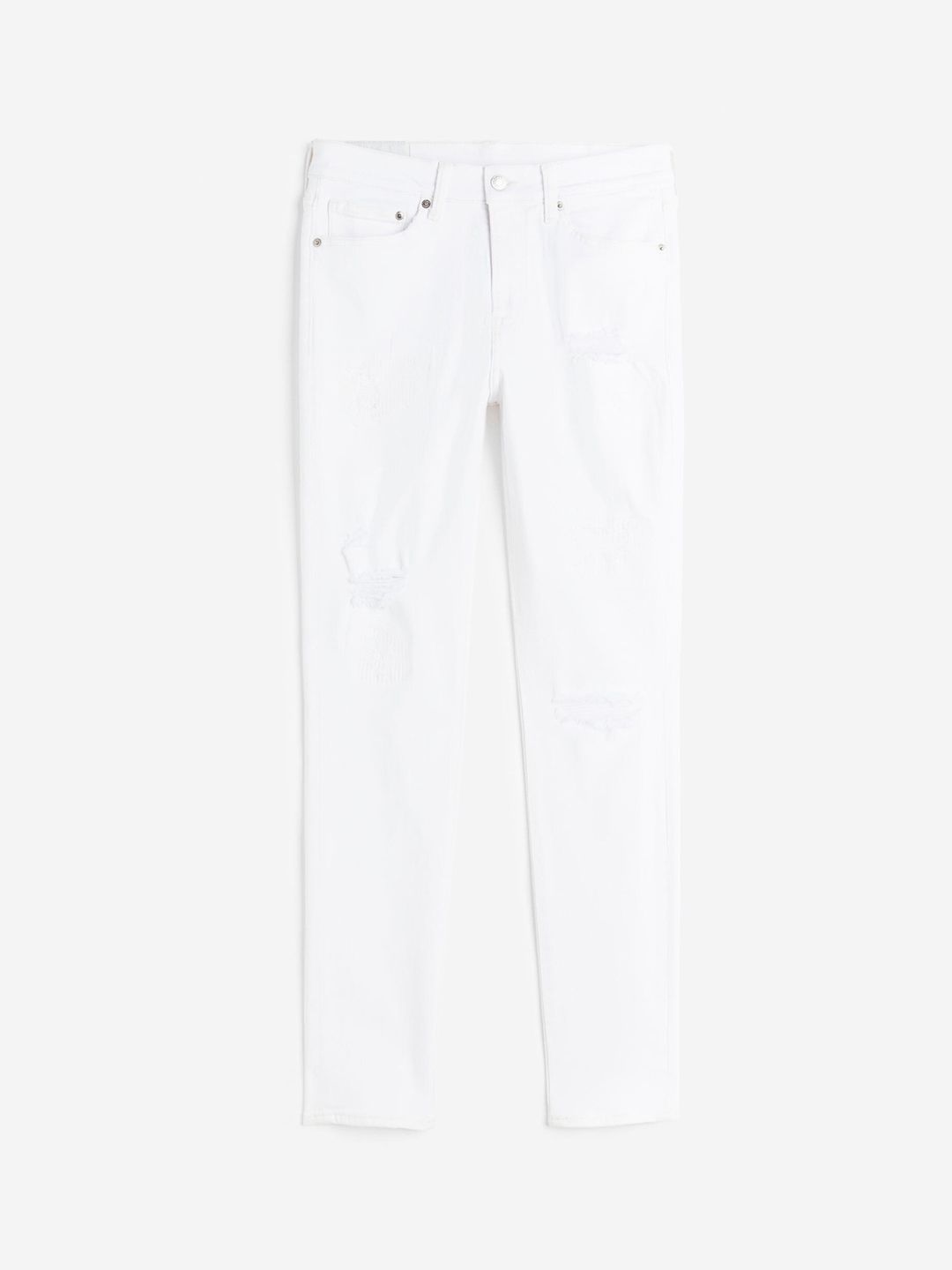 Men White Tapered Fit Mildly Distressed Stretchable Jeans