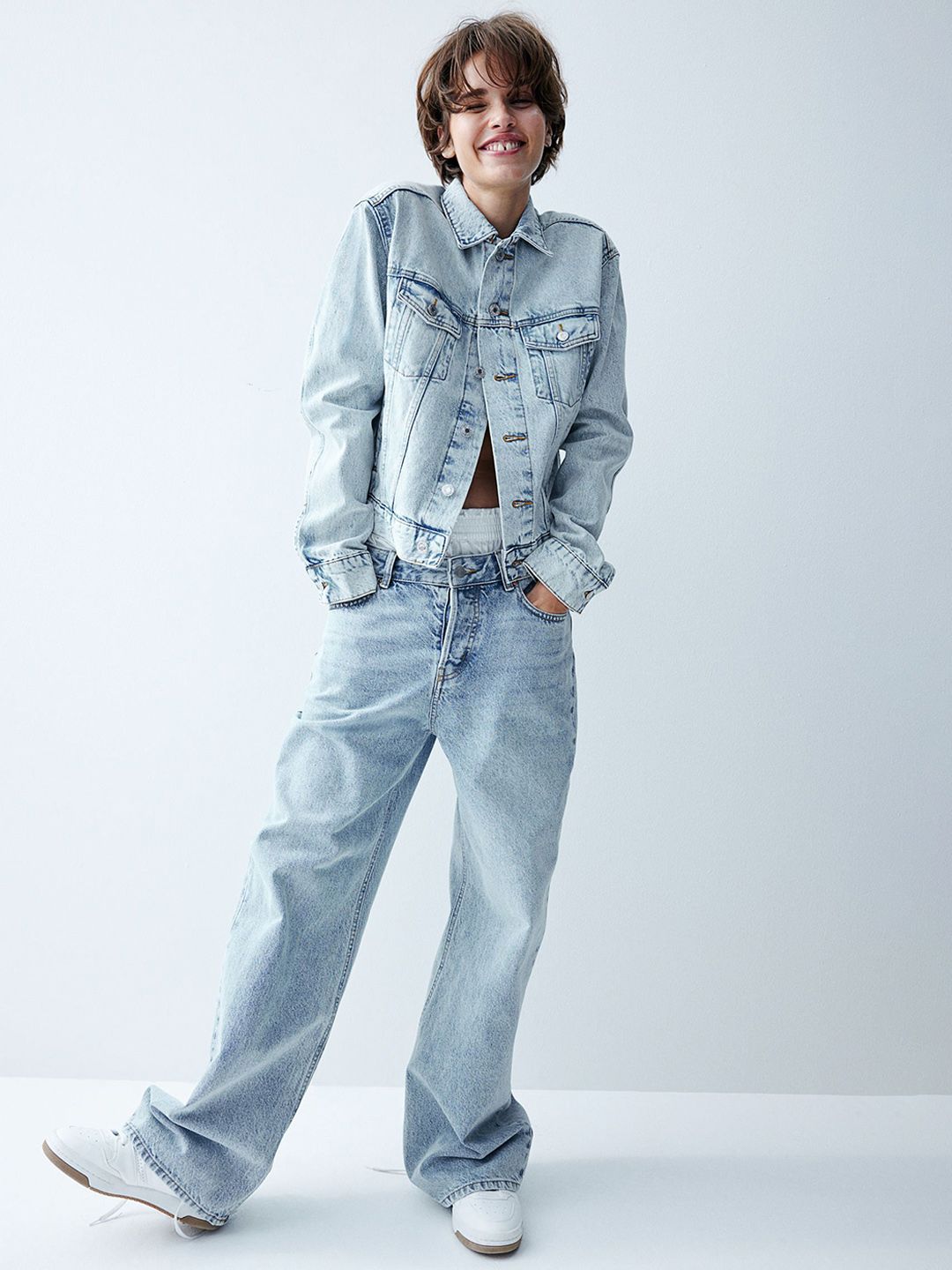 Washed Cotton Crop Denim Jacket