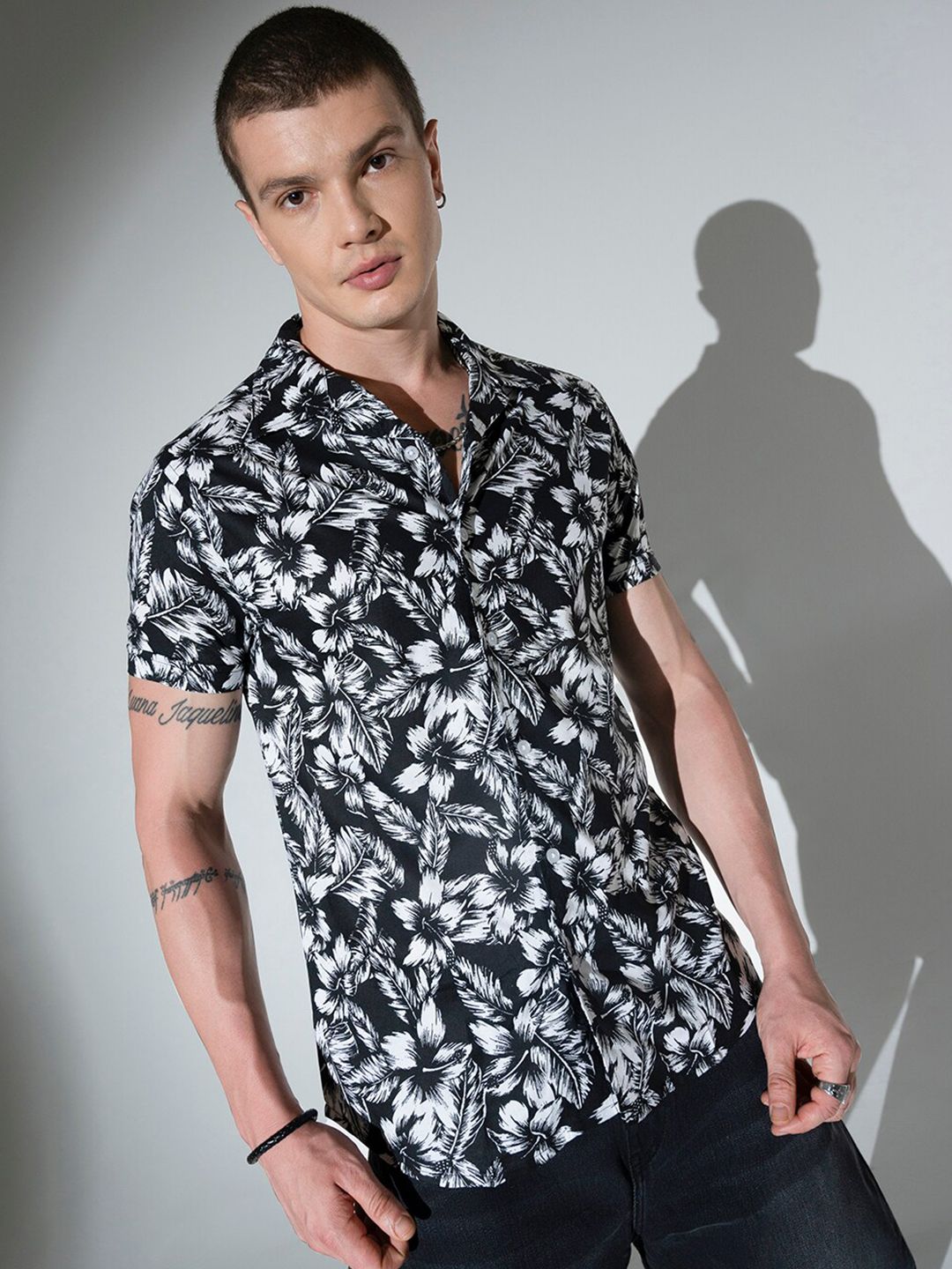 Men Black Regular Fit Floral Opaque Printed Casual Shirt