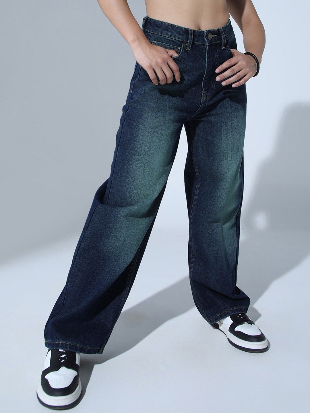 Women Relaxed Fit High-Rise Clean Look Heavy Fade Stretchable 90's Baggy Jeans
