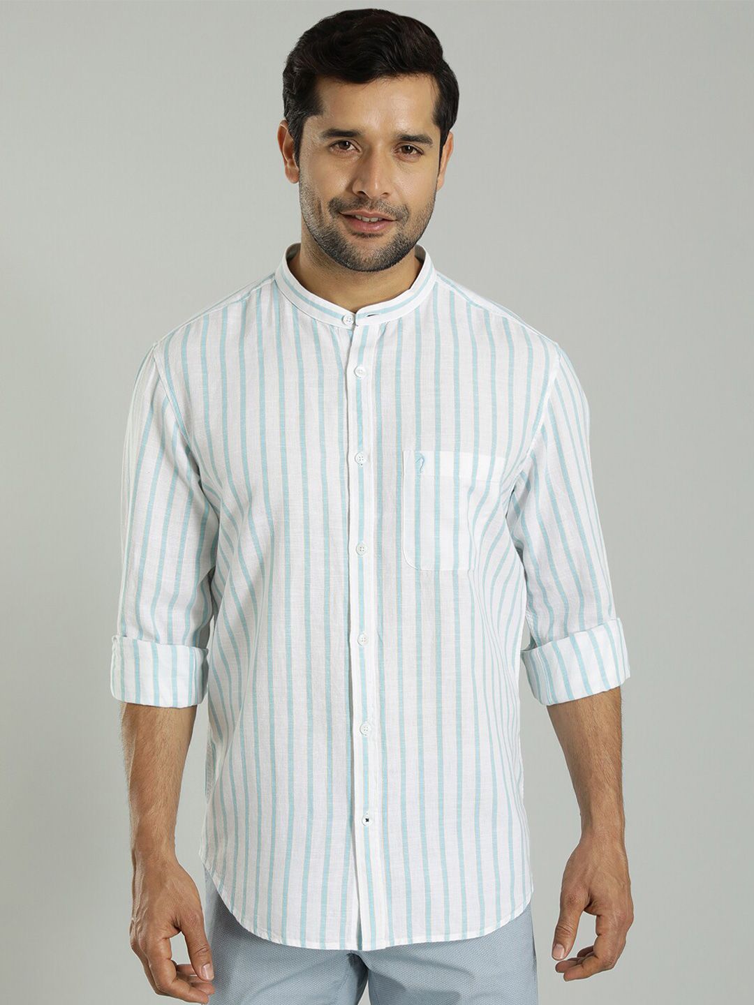 India Slim Fit Opaque Vertical Striped Linen Casual Shirt
