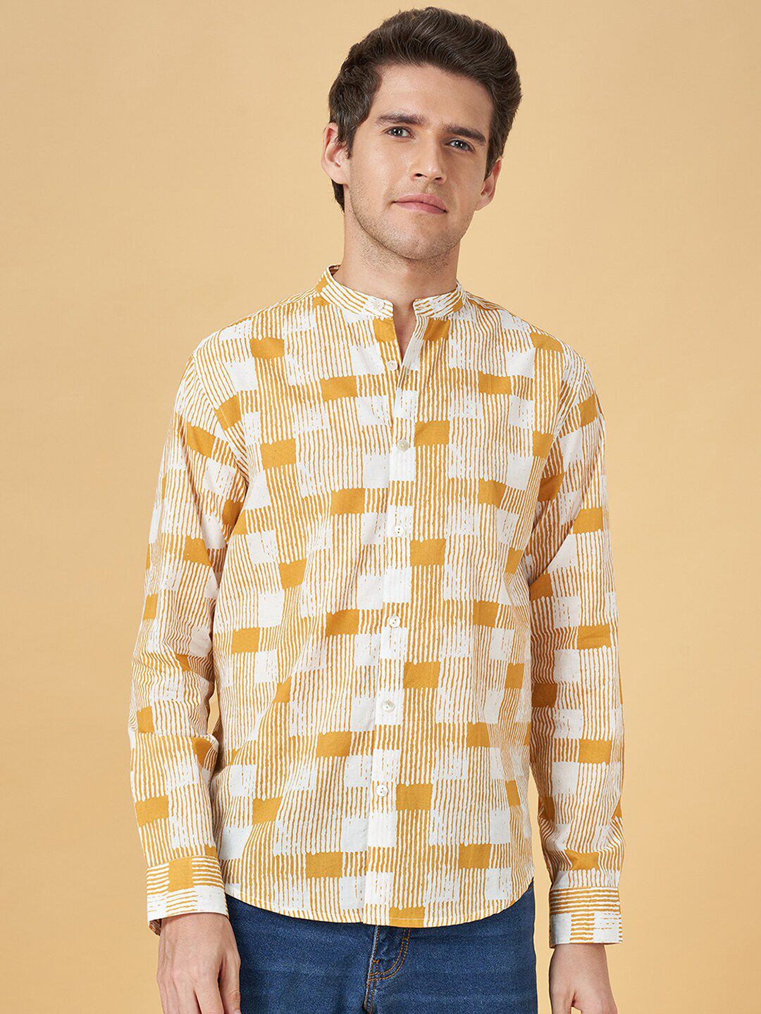 Men Mustard Yellow & Rust Brown Classic Regular Fit Printed Casual Shirt
