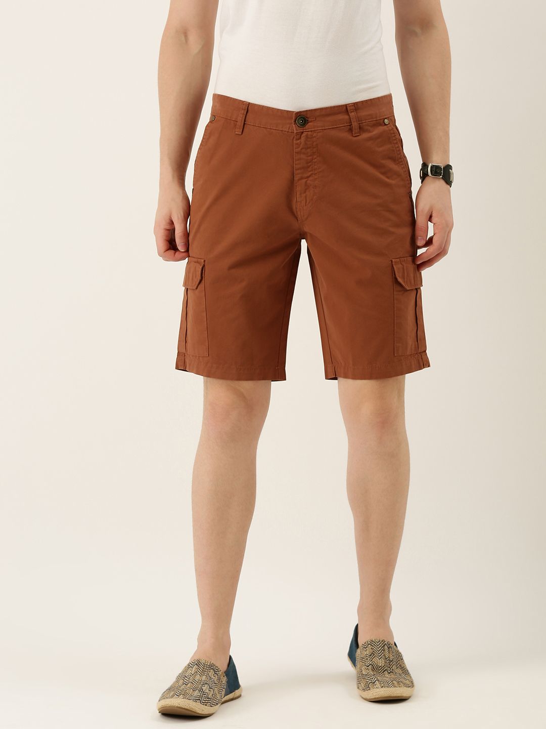 Men Rust Brown Slim Fit Cargo Cotton Blend Shorts