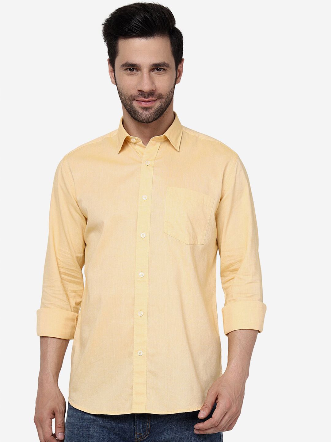 Men Yellow Relaxed Slim Fit Solid Formal Shirt