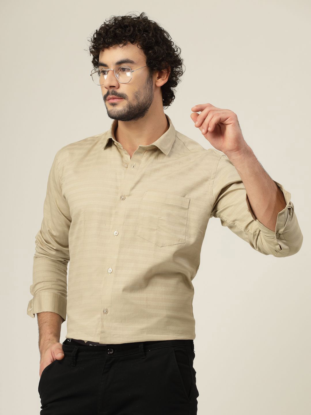Men Beige Classic Regular Fit Self Design Formal Shirt