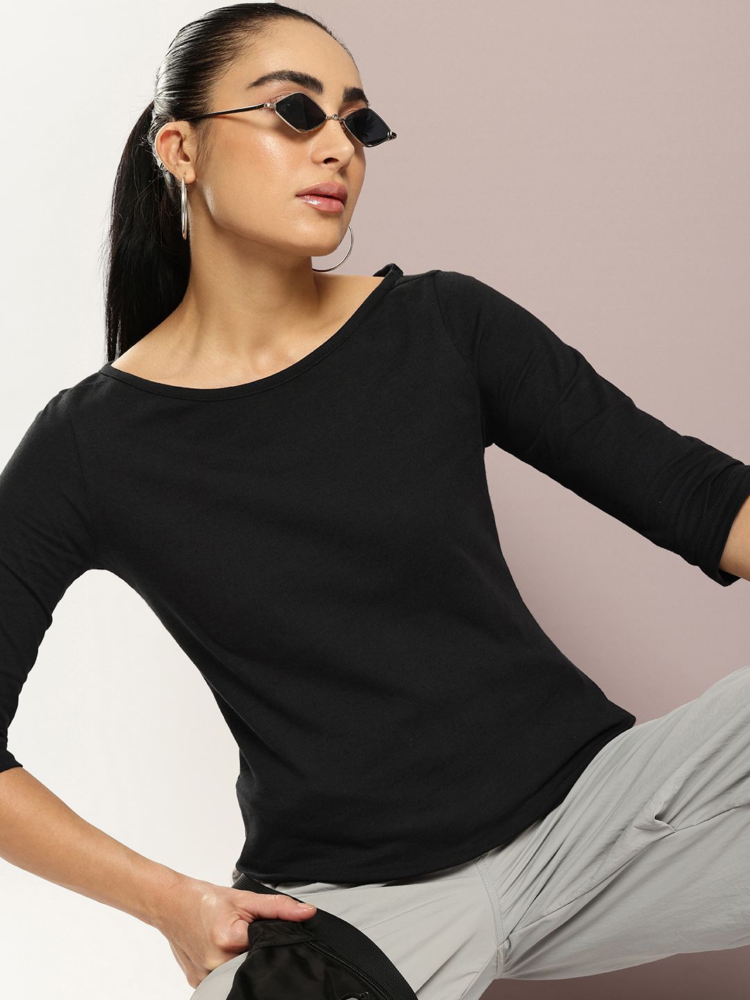 Women Black Solid Pack Of 2 Organic Cotton Top