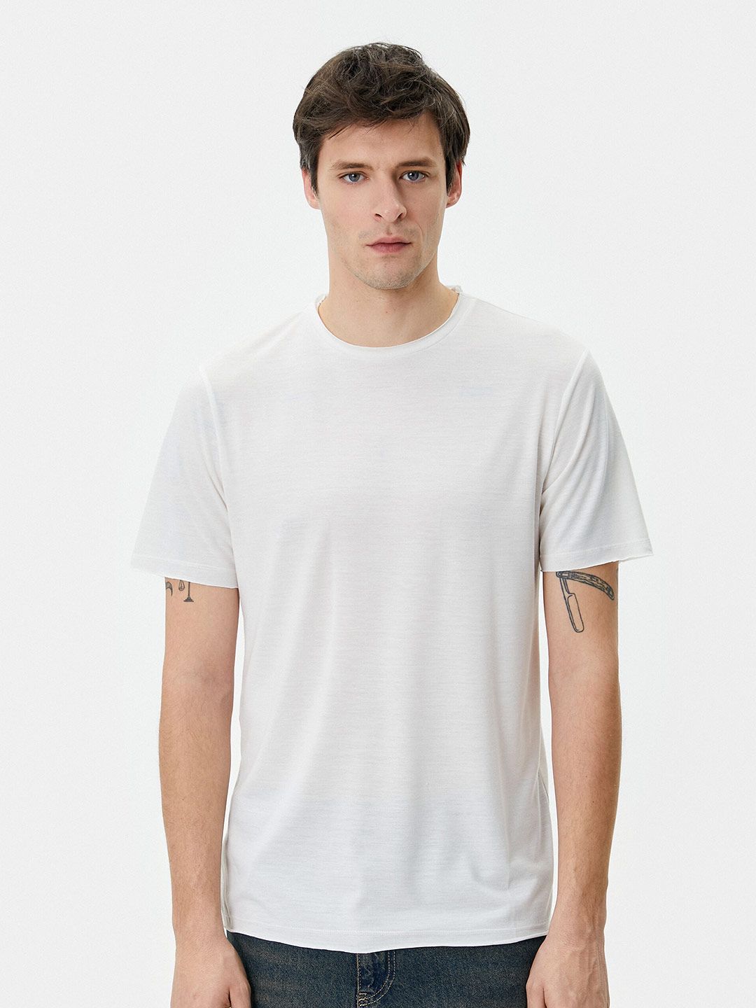 Men White Basic Slim Fit Heathered Crew Neck T-shirt