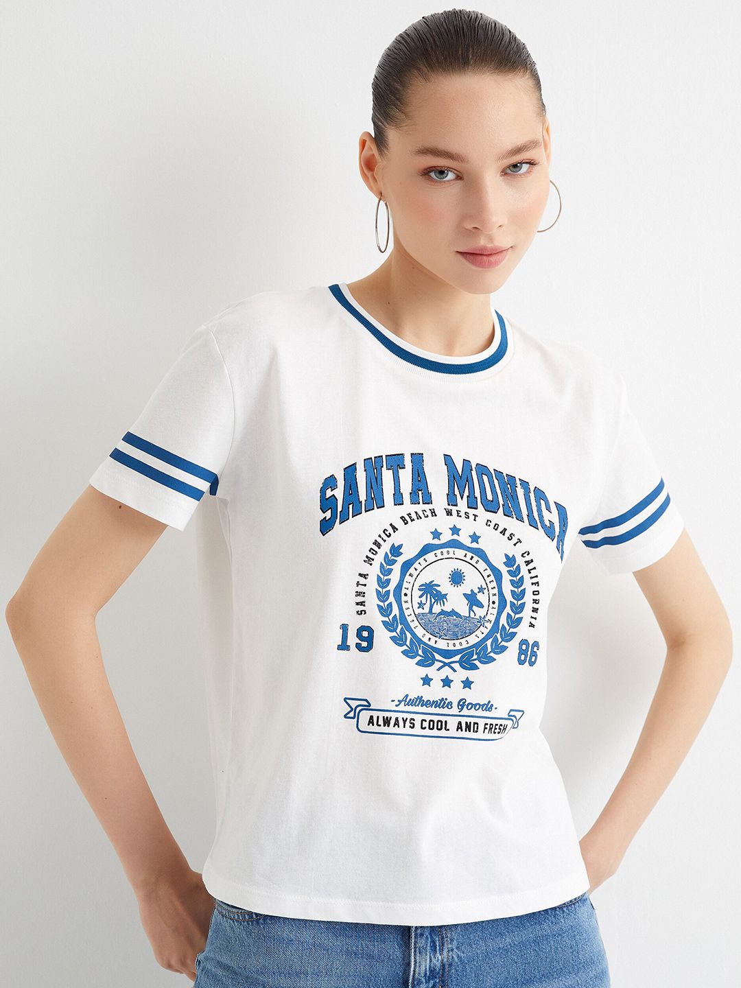 Women Varsity Printed Round Neck Cotton T-Shirt