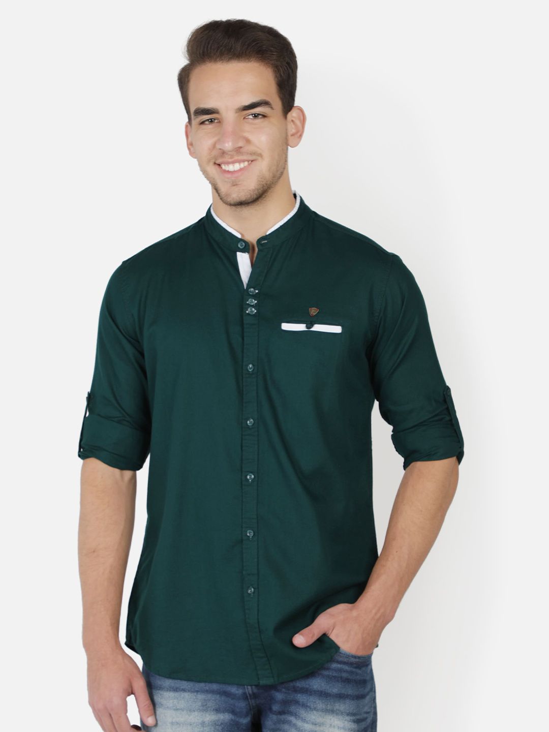 Men Mandarin Collar Solid Slim Fit Casual Shirt