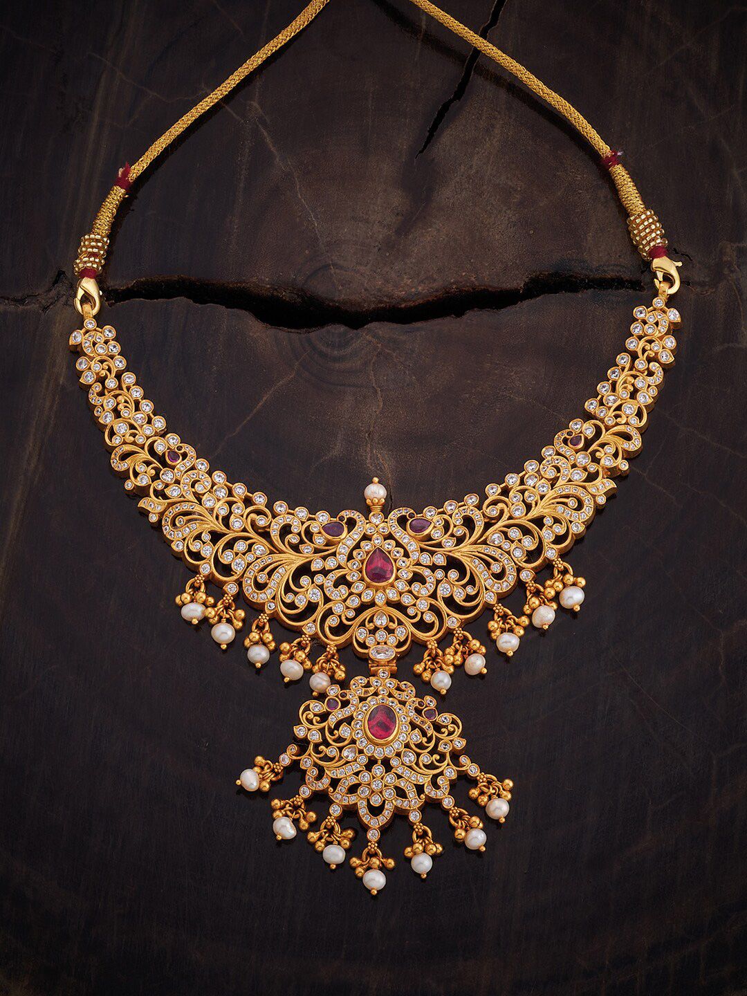 Copper Gold-Plated Cubic Zirconia Studded Antique Necklace