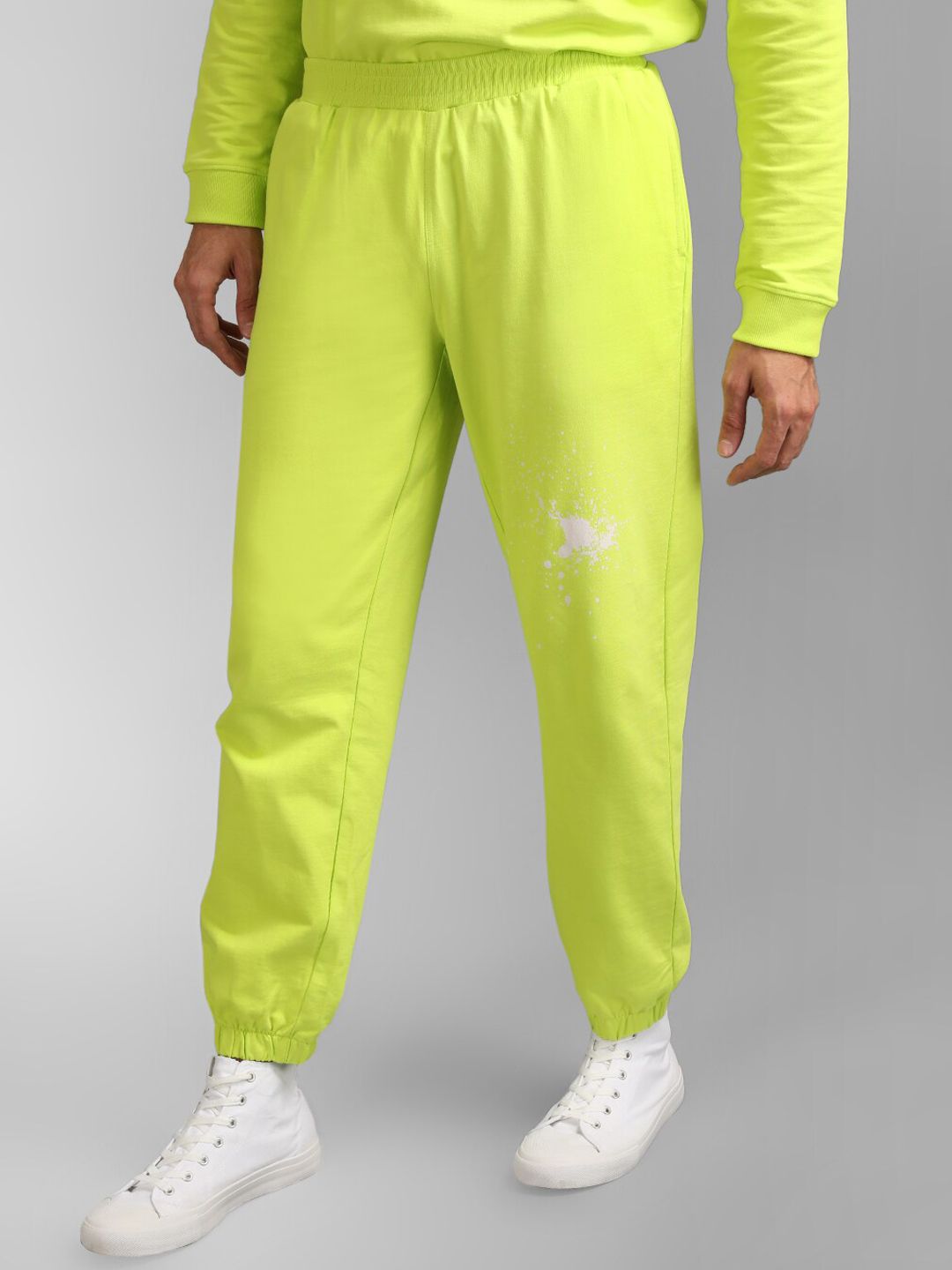 Women Fluorescent Green & Black Colourblocked Slim Fit Solid Joggers