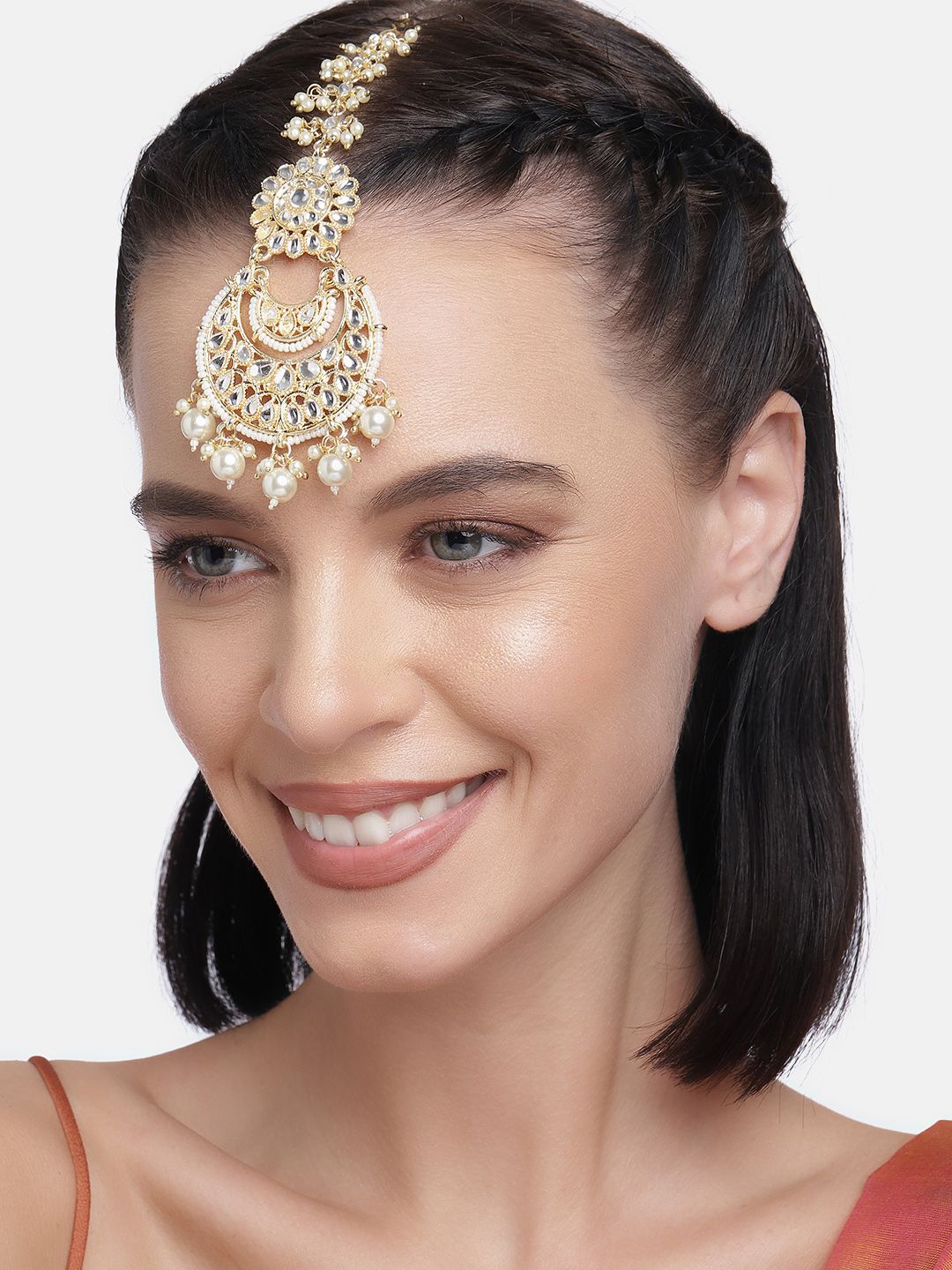 Women Gold Plated & White Kundan Studded Maang Tikka