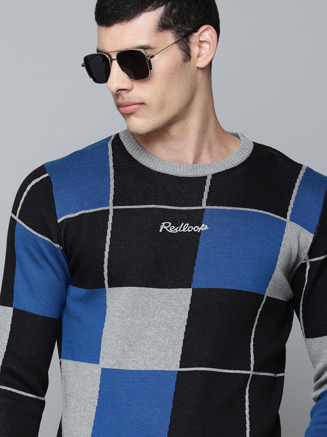 The Lifestyle Co Men Grey & Black Checked Pullover