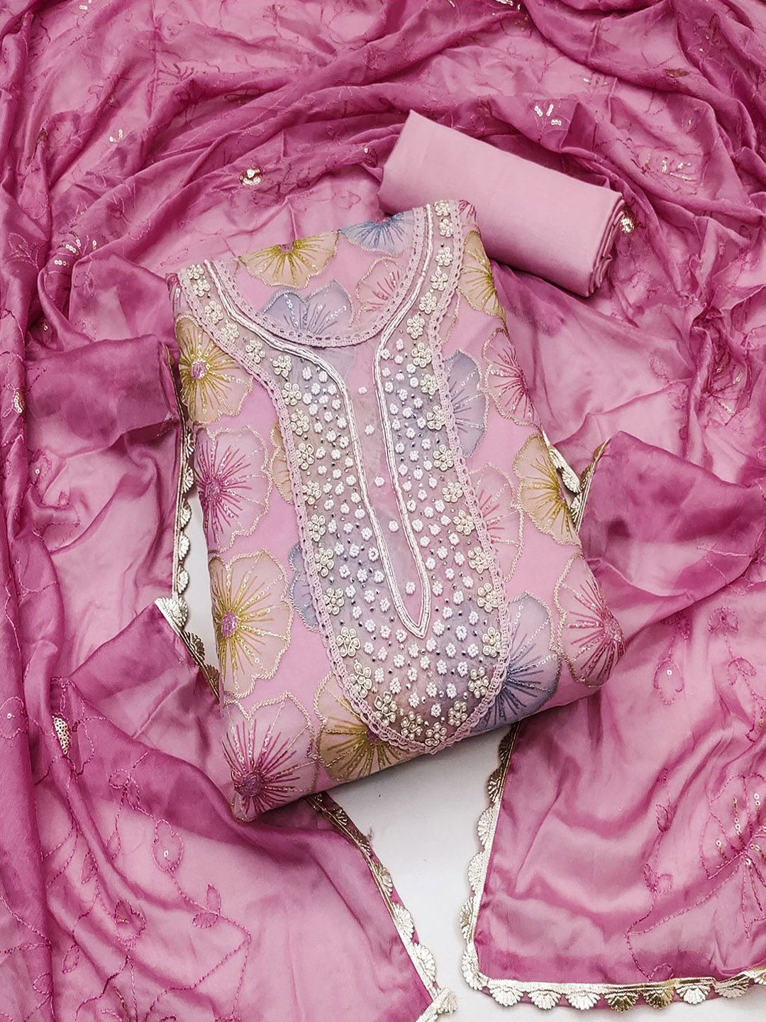 Floral Embellished Organza Unstitched Dress Material